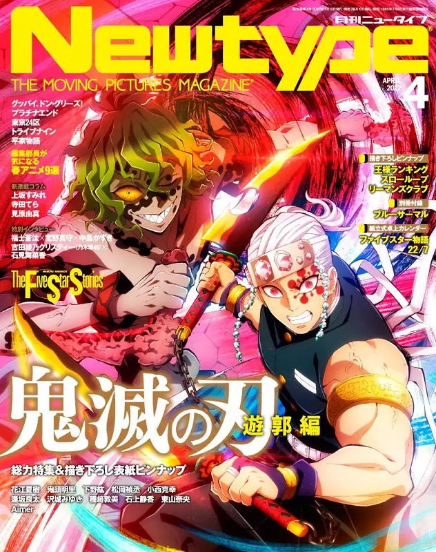 Hace unas horas se lanzaron las portadas de los números de abril de las revistas Newtype, Animedia y Animage, todas son acerca y de contenido de anime y las 3 revistas tiene como portada una ilustración de Kimetsu no Yaiba.