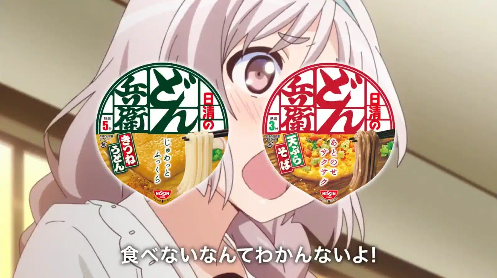 En las últimas horas, se ha vuelto viral este video publicado por la empresa de fideos instantáneos Donbei en Japón, en el cual podíamos ver una nueva publicidad para sus respectivos productos, pero lo que dejó sorprendidos a todos fue la aparición del anime Inou-Battle wa Nichijou-kei no Naka de. Y es que esta publicidad tiene de protagonista a una de las escenas de la obra, donde justamente están hablando de los fideos.