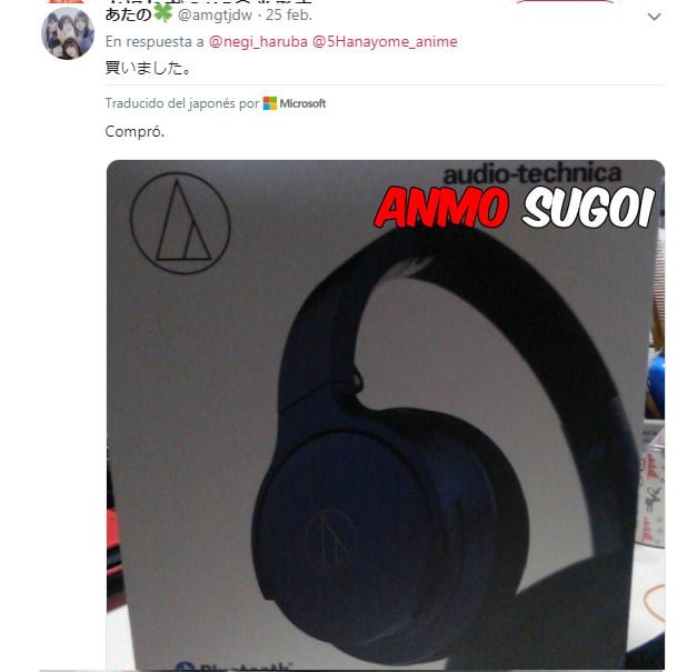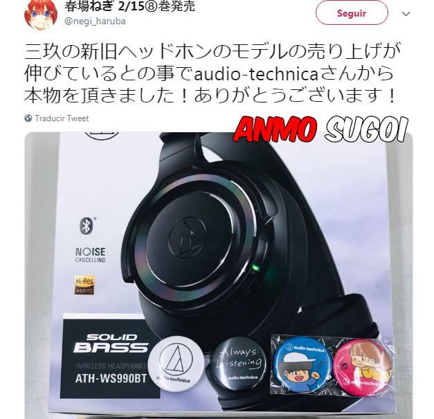 Como todos sabemos Miku, del anime Go-toubun no hanayome, es una amante de la música que siempre trae con ella sus audífonos, en especifico los Audio-Technica ATH-WS990BT.