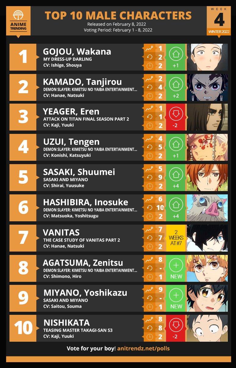Asimismo, la serie Sono Bisque Doll wa Koi wo Suru tambiรฉn obtuvo los primeros lugares en los rankings de mejor personaje masculino y mejor personaje femenino de la semana. Todo esto en la cuarta semana de la temporada invierno 2022.