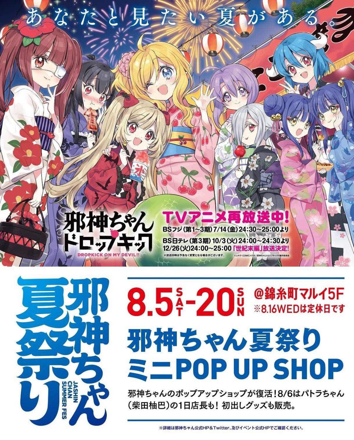 El impactante anime de Jashin-chan Dropkick (Dropkick on my Devil) ha hecho vibrar a la comunidad otaku de todo el mundo. La serie se caracteriza por su humor negro, la interacción entre los personajes sobrenaturales y humanos, así como las situaciones absurdas y extravagantes en las que se ven involucrados y gracias a su éxito con sus diversas temporadas. Y ahora, para deleite de los fans, las carismáticas protagonistas se están preparando para hacer una aparición en el próximo evento Evil God Summer Festival Mini POP UP TIENDA.