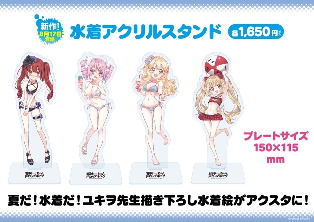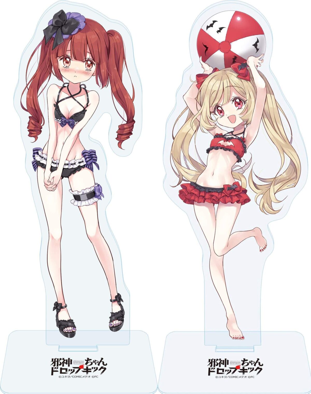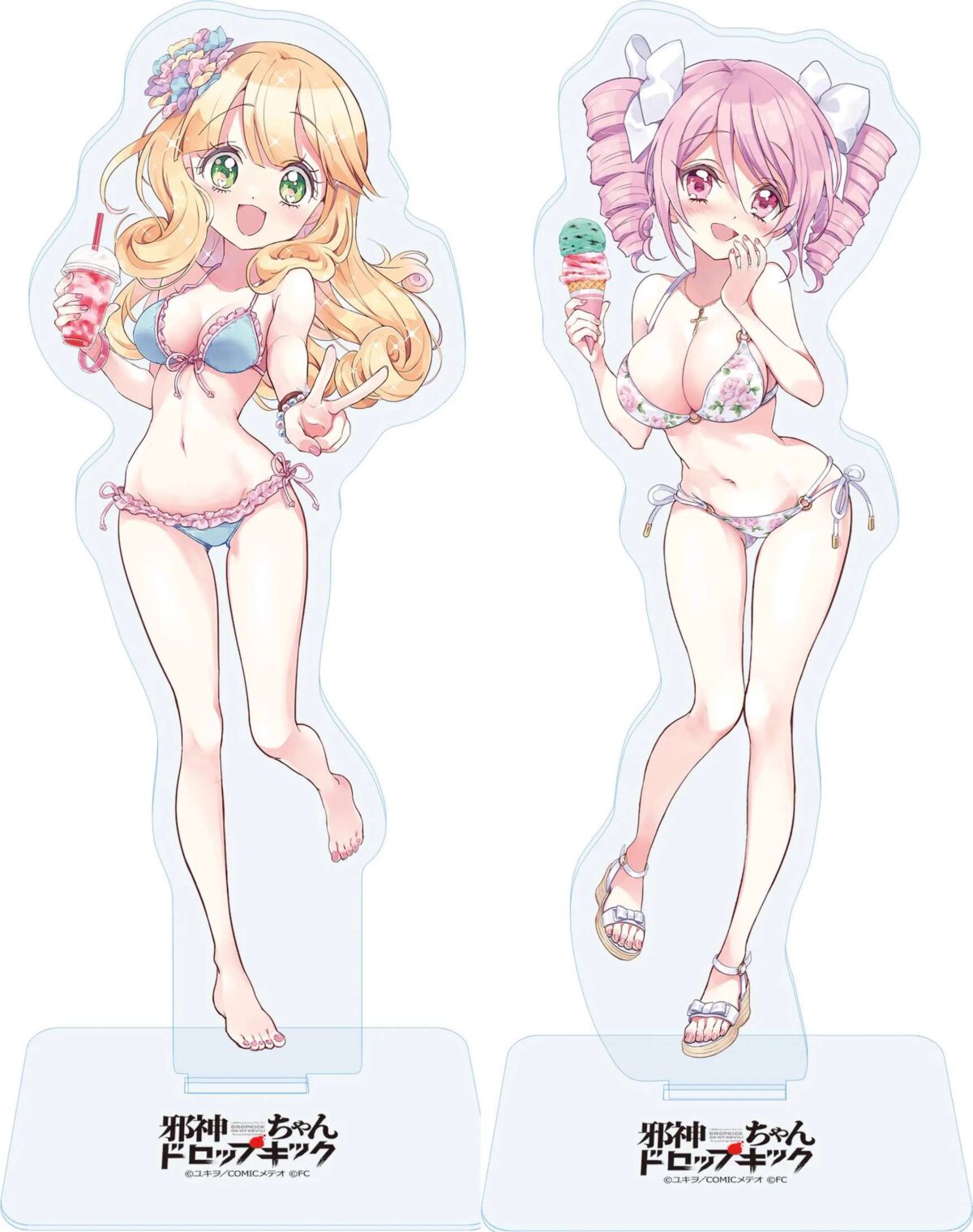Entre los productos anunciados que giran en torno a estos deslumbrantes bikinis, se encuentran las figuras de acrílico que capturan a cada una de las chicas en su plenitud, permitiendo a los fans llevar consigo un pedacito de su encanto a donde quiera que vayan. Además, la página central de Evil God Summer Festival Mini POP UP TIENDA ha sorprendido a todos con una imagen que anticipa una emocionante novedad: productos inspirados en las chicas de Jashin-chan Dropkick vestidas con yukatas tradicionales en el clásico y emblemático festival