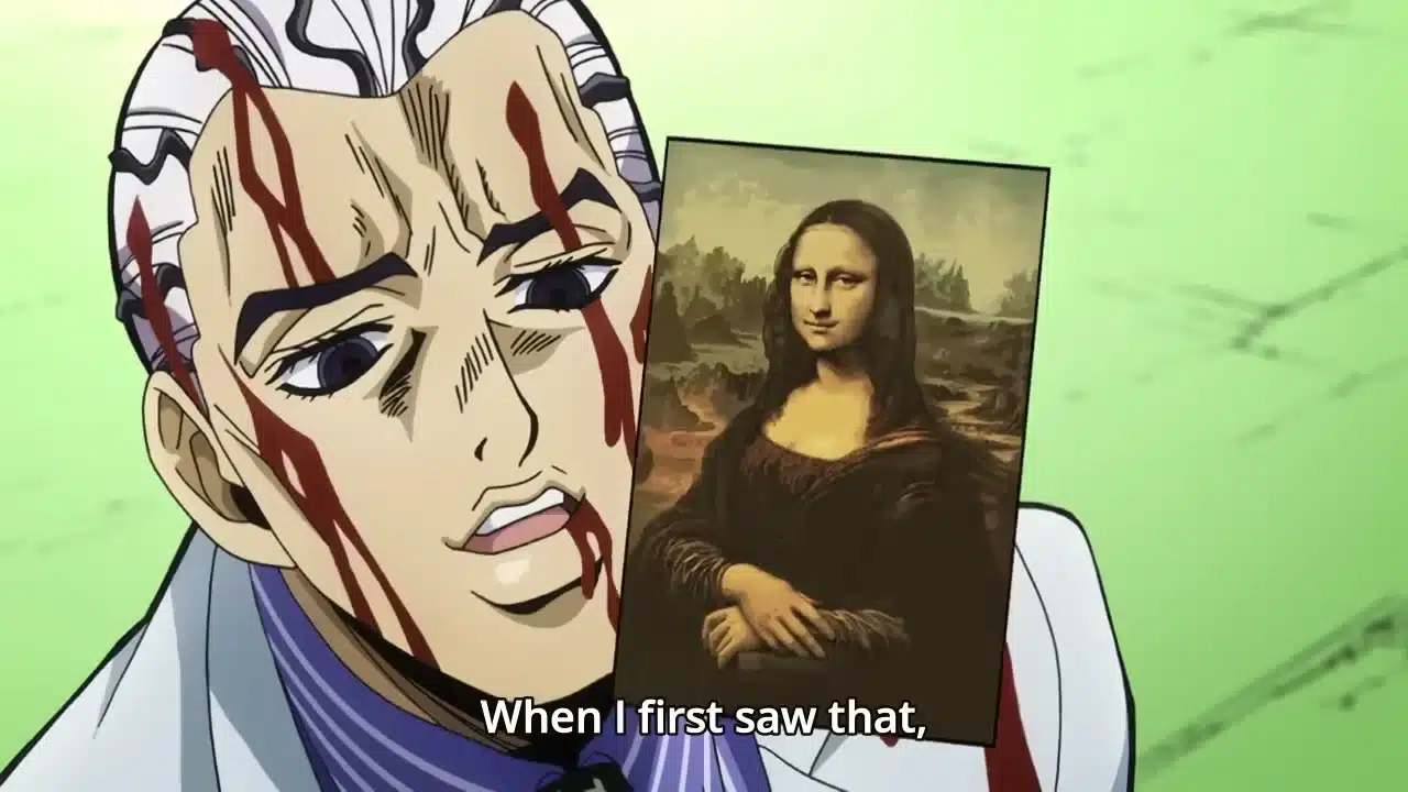 Este comentario sobre JoJo’s Bizarre Adventure era una clara referencia a una escena cómica y bastante recordada del arco Diamond is Unbreakable, donde el personaje Yoshikage Kira tiene un despertar tras ver la Mona Lisa en un libro escolar.