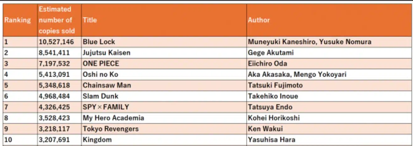 Uno de los puntos más destacados de este ranking no oficial es el ascenso de Jujutsu Kaisen, que ha logrado superar a One Piece en ventas, con una estimación de 7,61 millones de copias frente a los 5,25 millones de One Piece. Sin embargo, es importante señalar que Jujutsu Kaisen aún no ha alcanzado las cifras del 2023, cuando se encontraba en segundo lugar con 8,54 millones de copias vendidas, mientras que Blue Lock dominaba el primer puesto con 10,5 millones de copias en 2023.