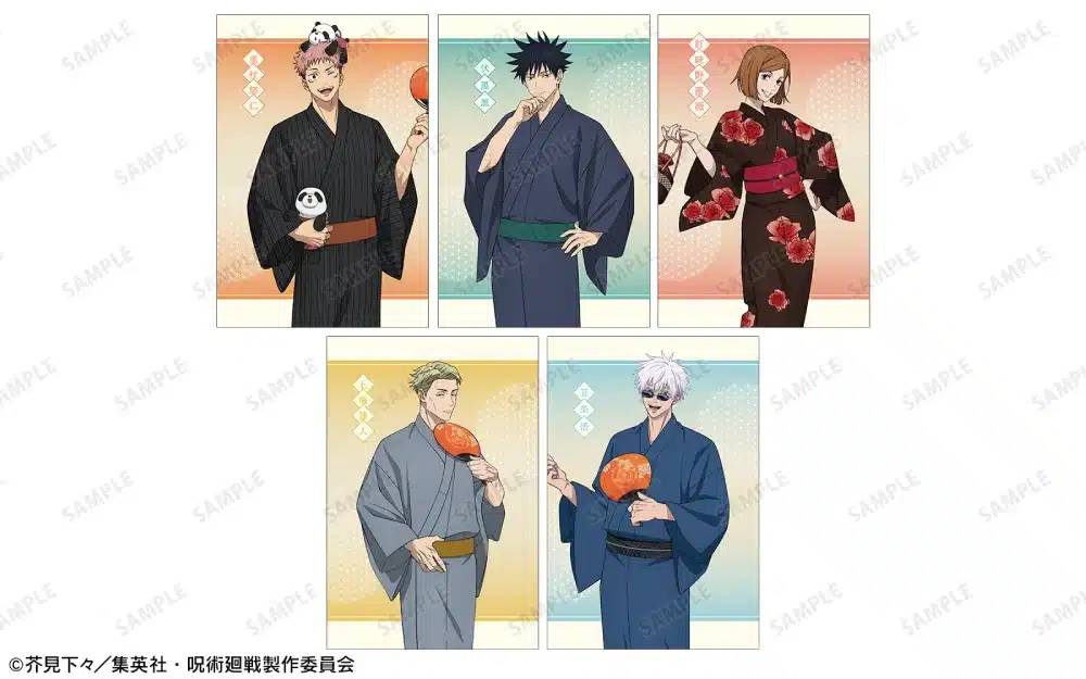 Además, por cada compra mayor a 3,000 yenes, los visitantes recibirán una postal especial. Esta se elegirá aleatoriamente entre varios diseños: algunos muestran versiones chibi de los personajes, mientras que otros presentan las nuevas ilustraciones en yukata.