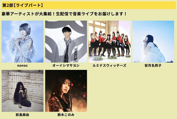 Como previamente les comentamos , el proyecto estará dividido en dos partes: La primera parte se titula «Variety Part» y es un programa de variedades con actores de voz como invitados, mientras que la segunda parte se titula «Live Part» y presentará una serie de conciertos en vivo.