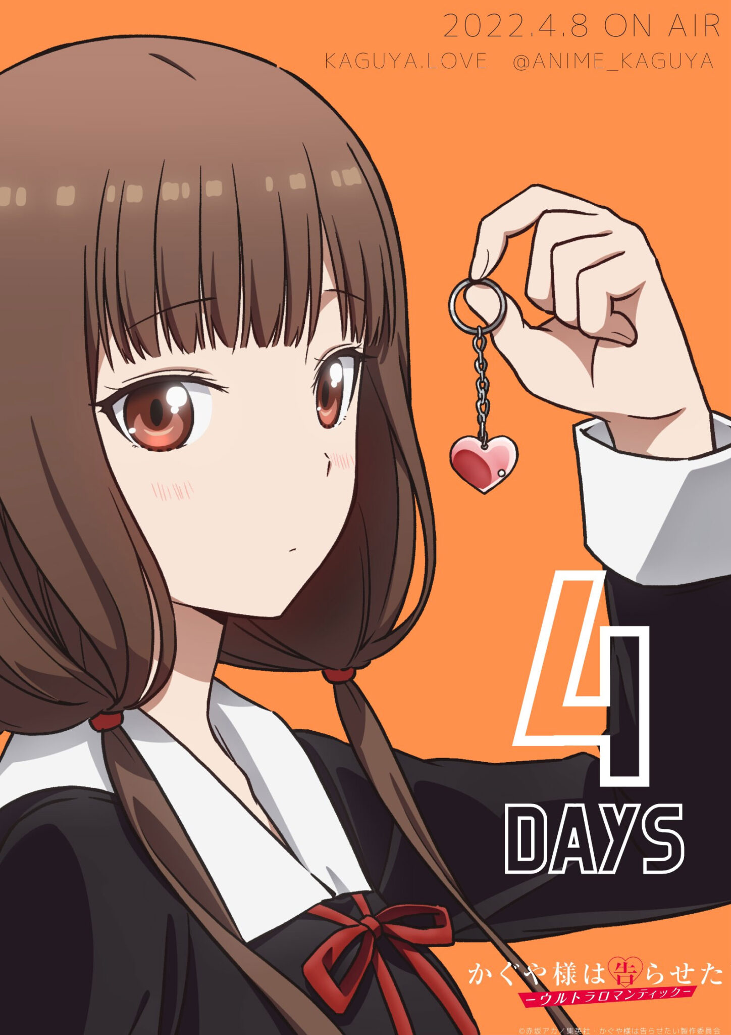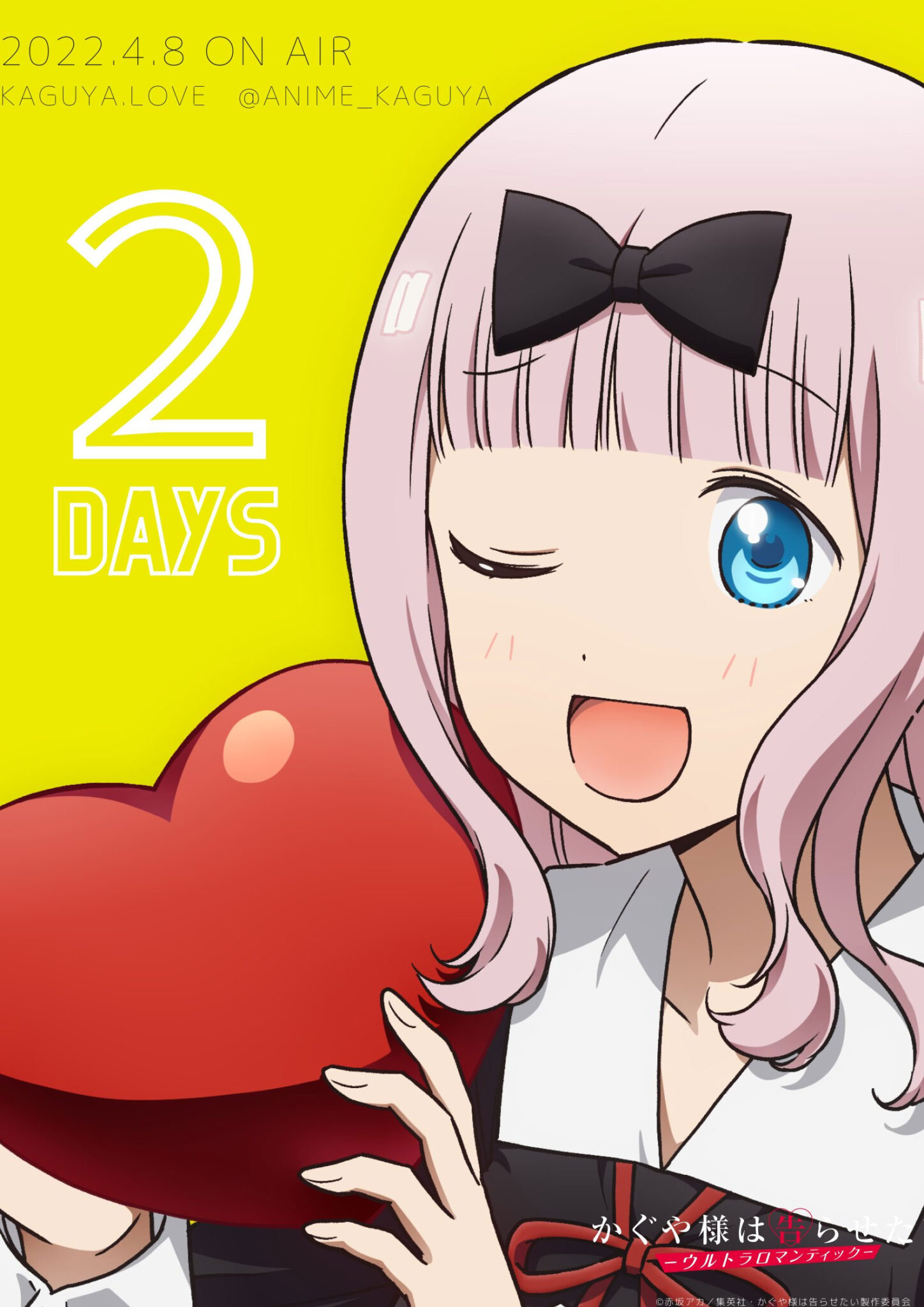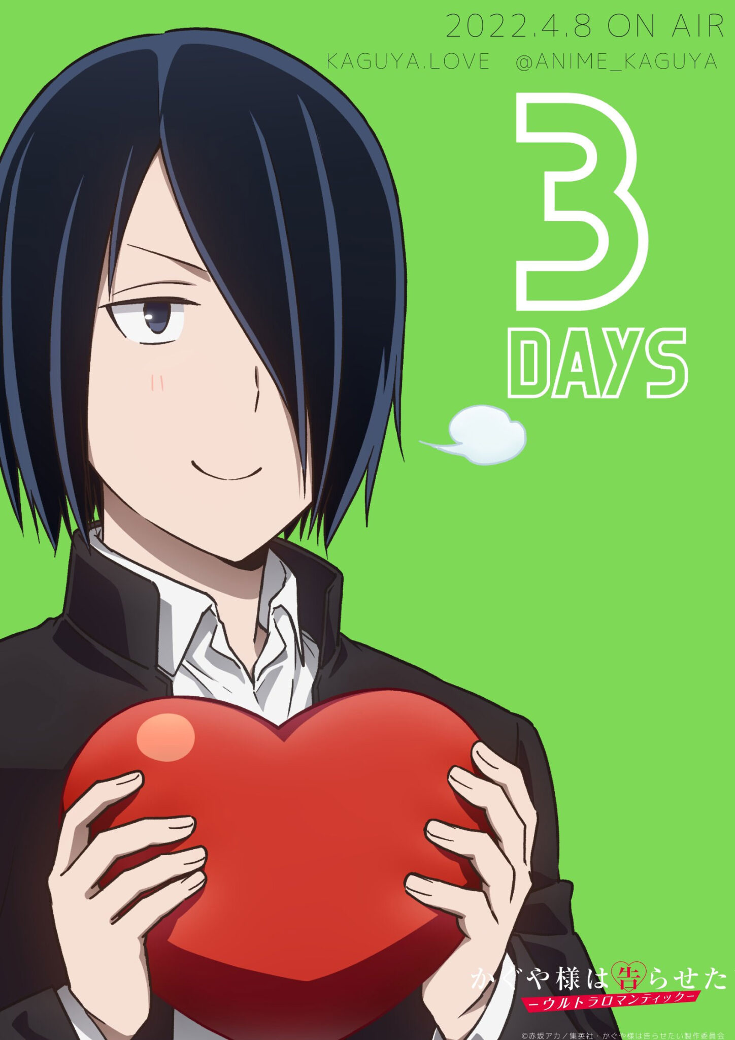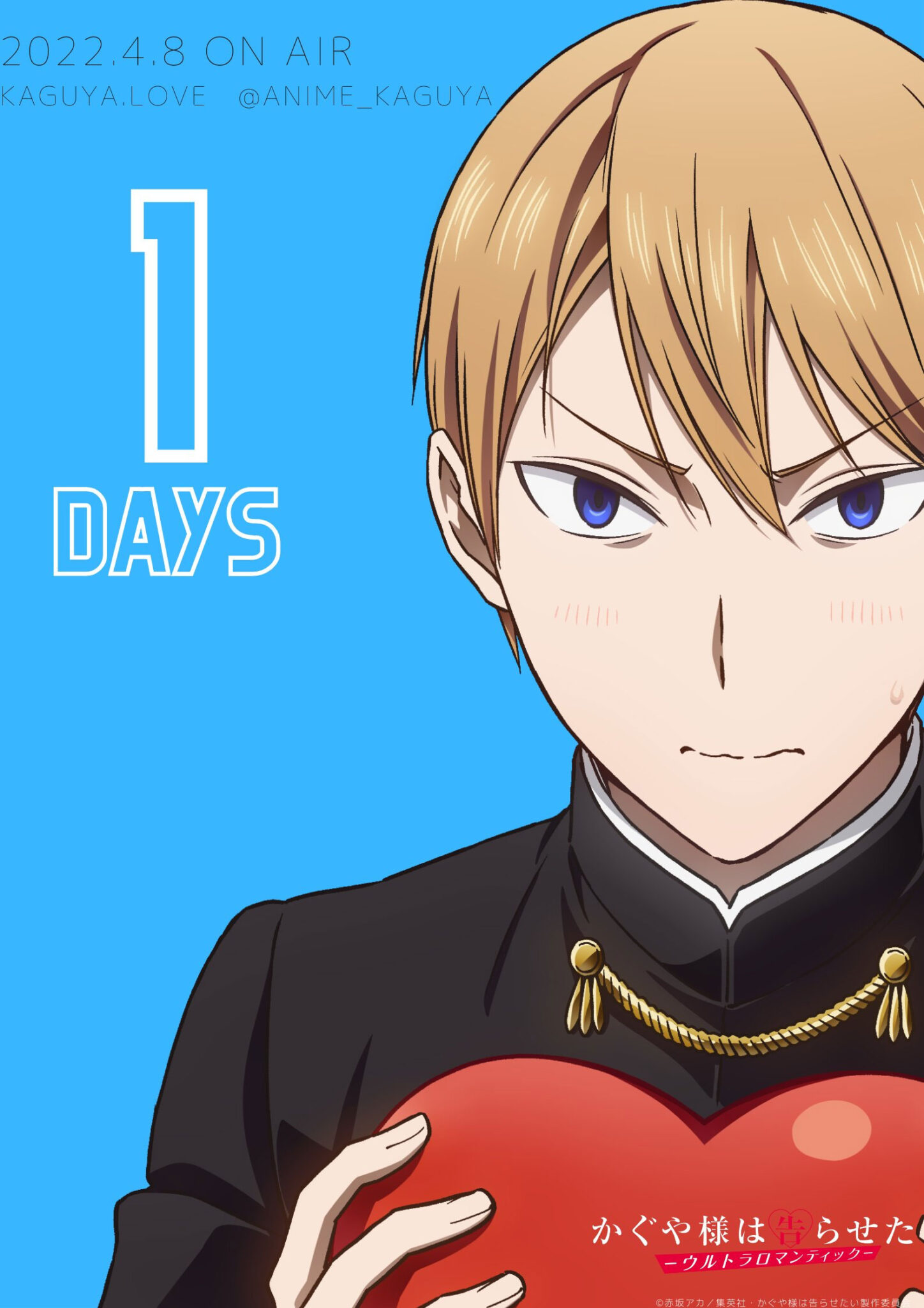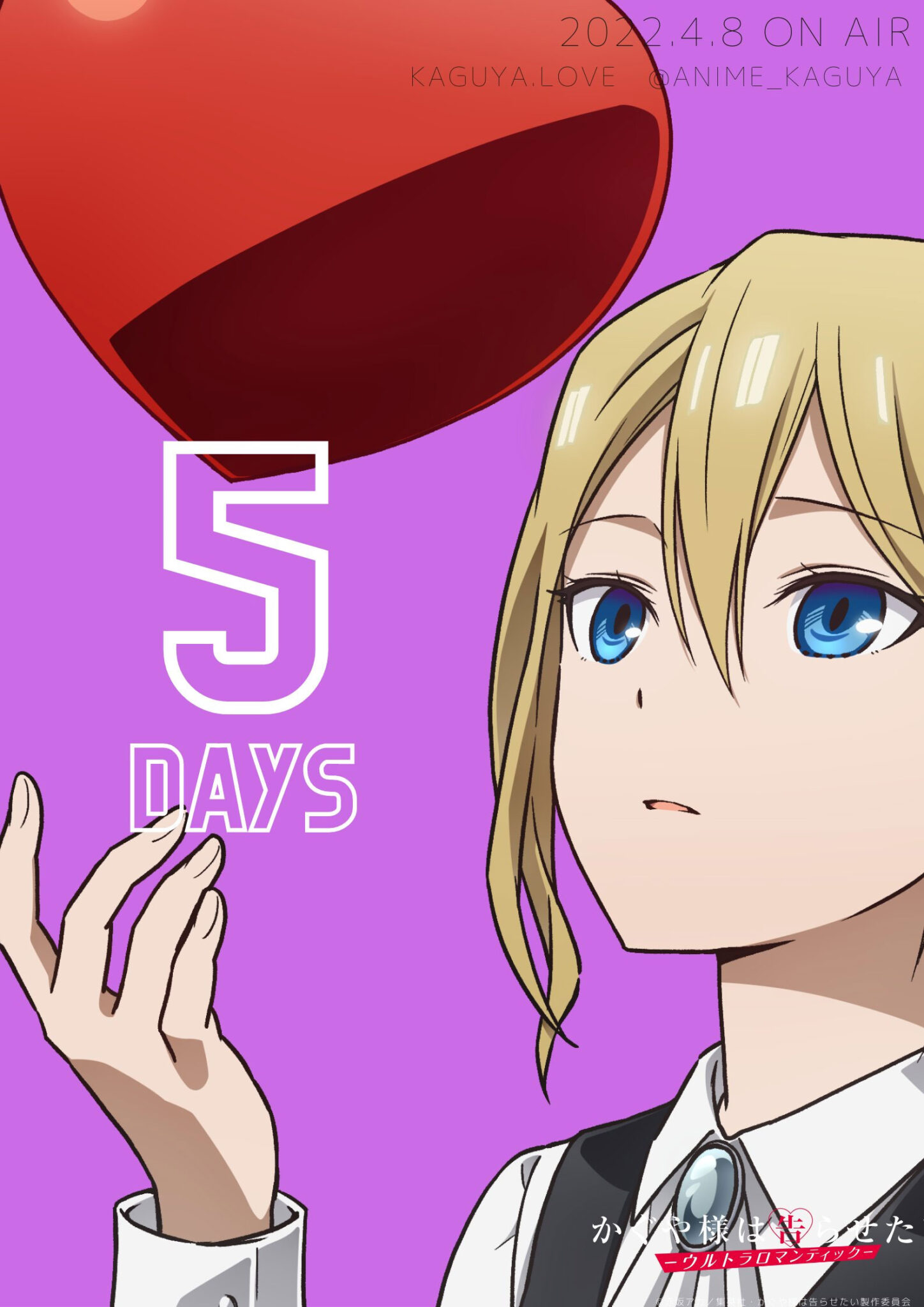 Pero eso no es todo, ya que en el Twitter oficial del anime Kaguya-sama: Love is War también se ha estado realizando otra cuenta regresiva pero con algunas imágenes visuales. las visuales son las siguientes: