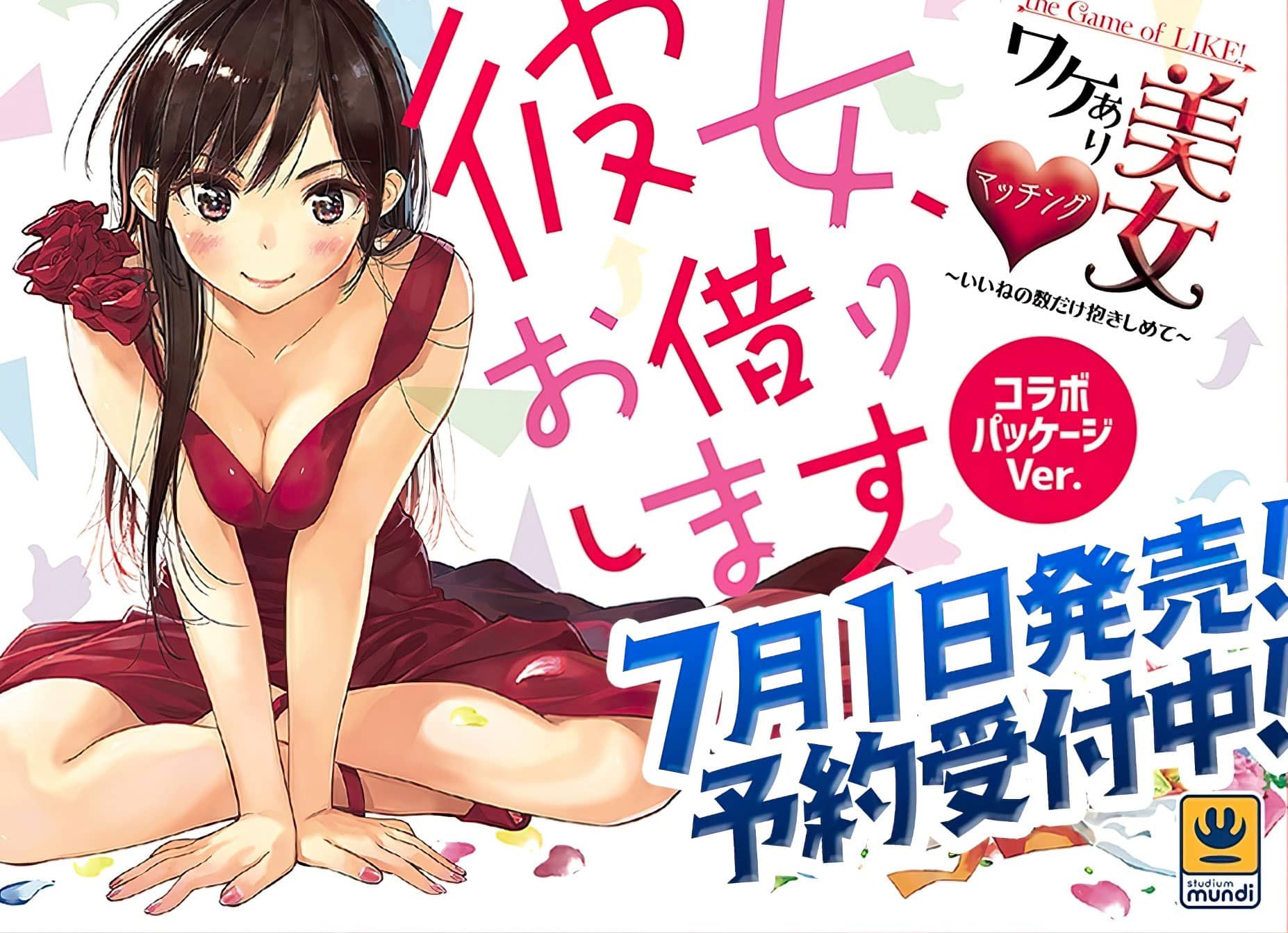 La popular franquicia Kanojo, Okarishimasu (Rent-A-Girlfriend) anunció que realizará una colaboración con el juego de mesa japones «Wakeari Bijo Matching«. También se revelo la ilustración para la caja que contendrá el producto.