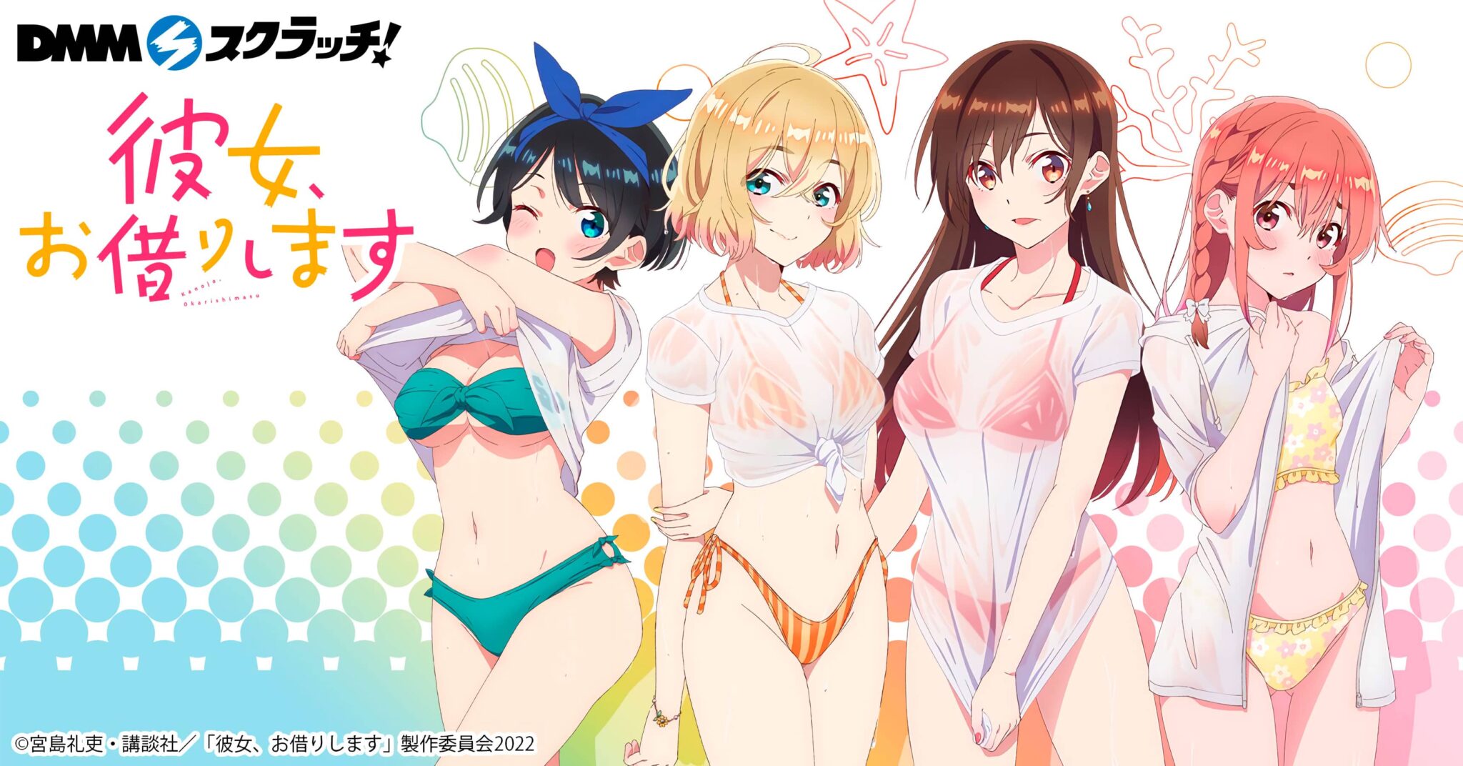 En el sitio web oficial de la compañia DMM Scratch se anunció una colaboración con el anime «Kanojo, Okarishimasu» (Rent-a-Girlfriend) que consistirá en la producción de unos productos especiales para un sorteo que estarán inspirados en los personajes Chizuru Mizuhara, Mami Nanami, Ruka Sarashina y Sumi Sakurasawa, quienes lucirán un atractivo traje de playa.