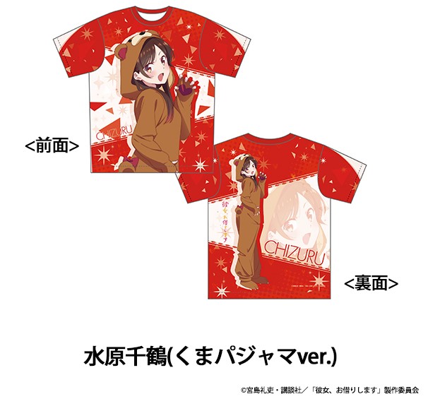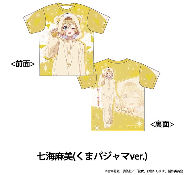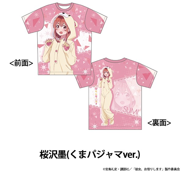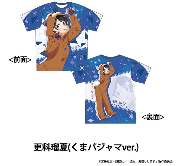 Estas hermosas camisetas inspiradas en las ilustraciones especiales de las chicas de Kanojo Okarishimasu en sus onesies únicamente estará disponible en la talla L y tendrá un costo de 6.600 yenes (58 dólares aprox.) cada una.