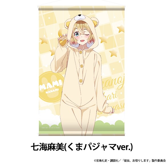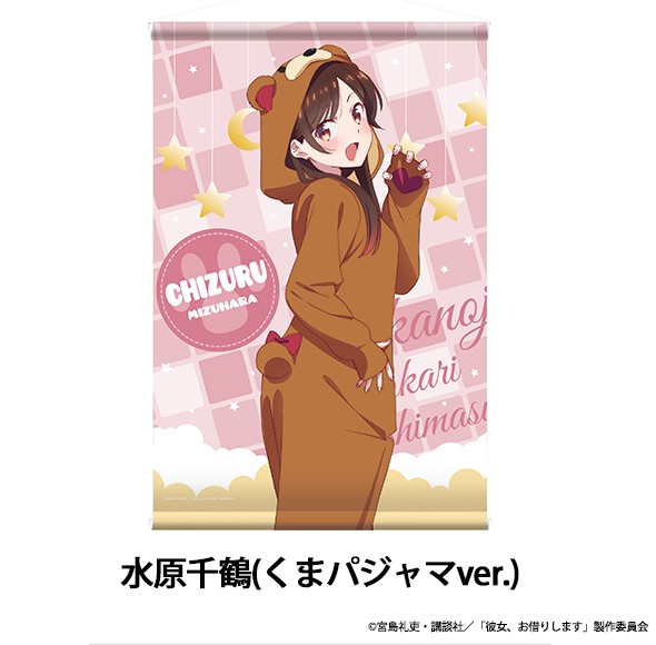 Estos hermosos tapices de tamaño B2 (500 x 700 mm aprox.) con las ilustraciones especiales de Chizuru, Mami, Ruka y Sumi vistiendo sus onesies de ositos tendrán un costo de 3.300 yenes (29 dólares aprox.) cada uno.