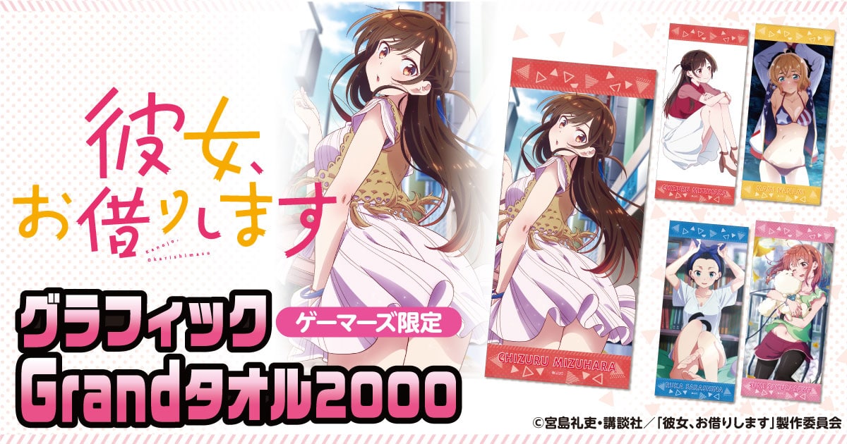 El sitio web oficial de la tienda Gamers, anuncio que se realizará una colaboración con la franquicia Kanojo, Okarishimasu (Rent-A-Gilfriend) la cual se pondrán a la venta toallas inspiradas en las protagonistas femeninas del anime.