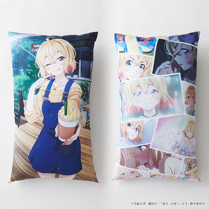 - Cojin de 1 metro de altura, el cual cada uno tendrá un diseño diferente de las personajes femeninas del anime. El producto tendrá un precio de 11.000 yenes cada uno (se incluyen los impuestos). Y sera lanzado a la venta el 31 de marzo de 2021.