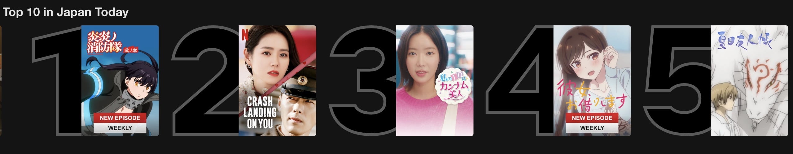 Netflix Japón acaba de revelar las series más vistas en su plataforma, destacando Fire Force por ser lo más visto en Japón y Kanojo, Okarishimasu por estar en cuarta posición.