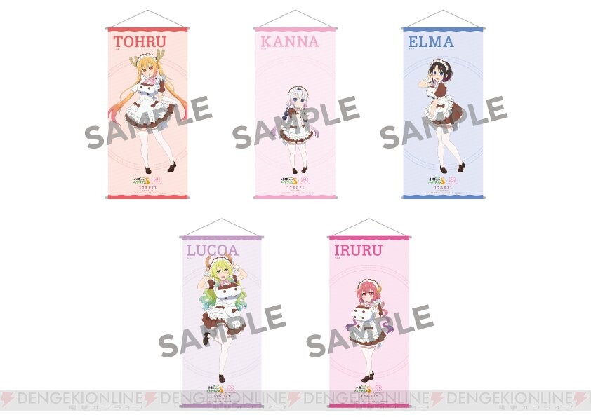 Las ilustraciones originales de Tohru, Elma, Lucoa, Kanna e Iruru en trajes de maid están presentes en varios productos para la colaboración, que comenzará el 1 de septiembre y durará hasta el 30 de septiembre.