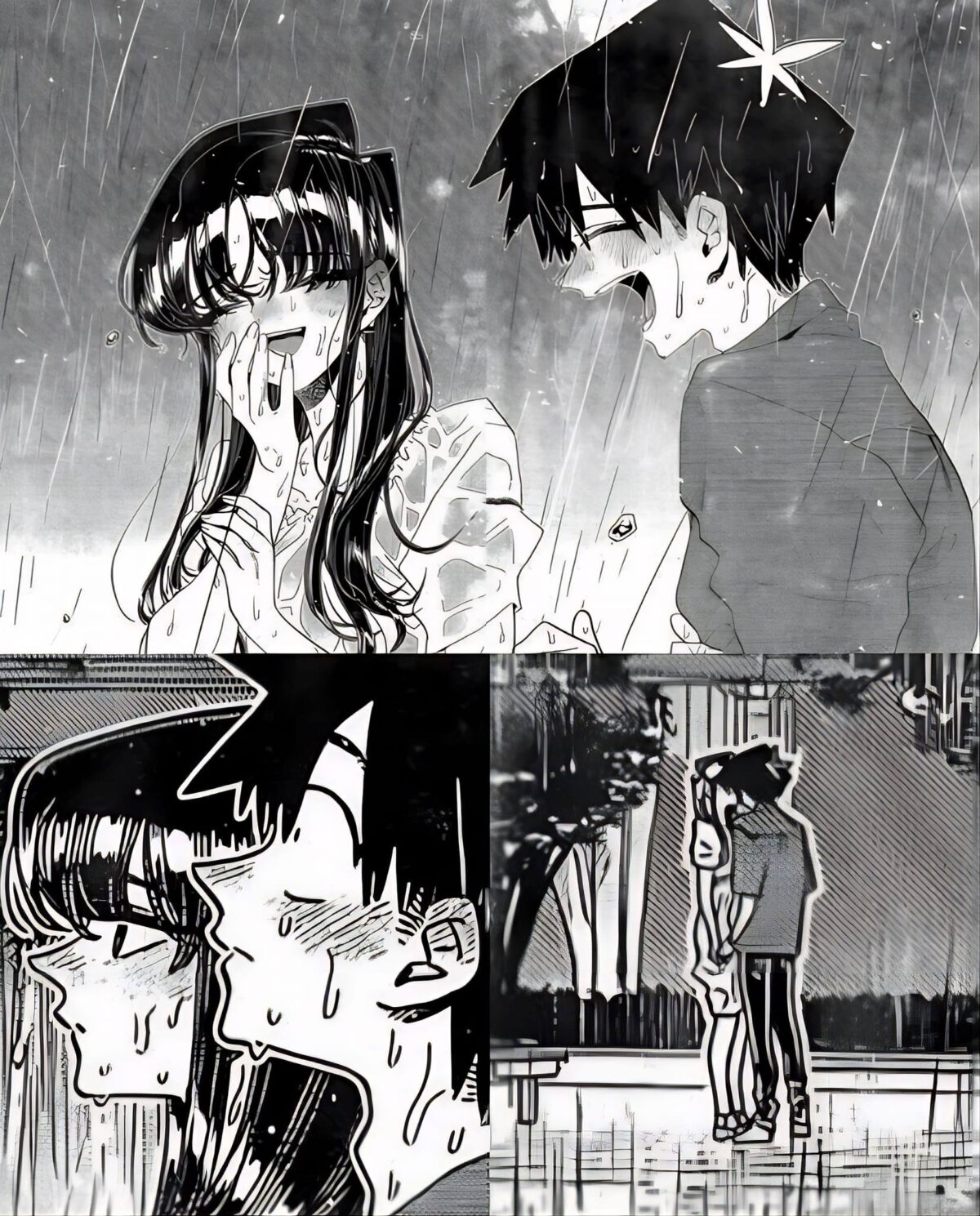 Esto ocurre luego de que Komi-san y Tadano-Kun nuevamente tienen una cita en un festival, donde de regreso a casa inesperadamente cae un aguacero, afortunadamente se da el ambiente perfecto entre sonrisas para que se hiciera realidad, está adorable y épica escena romántica que muchos esperaban desde hace un buen tiempo tras formalizarse su relación.