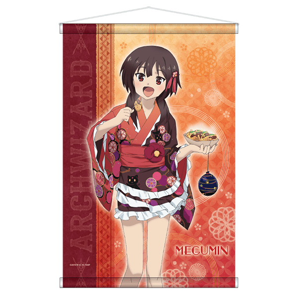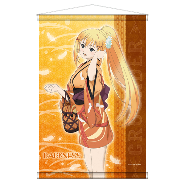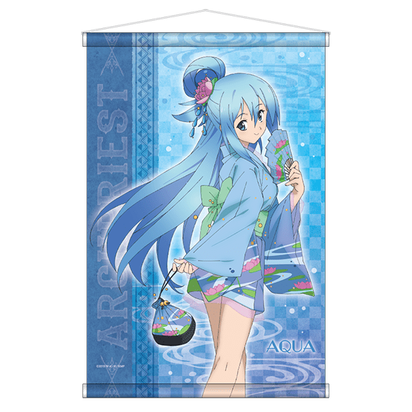 Primero tenemos una serie de tapices de tamaño B2 con las ilustraciones especiales de Aqua, Megumin y Darkness los cuales tendrán un costo de 3630 yenes (33 dólares aprox.) cada uno.