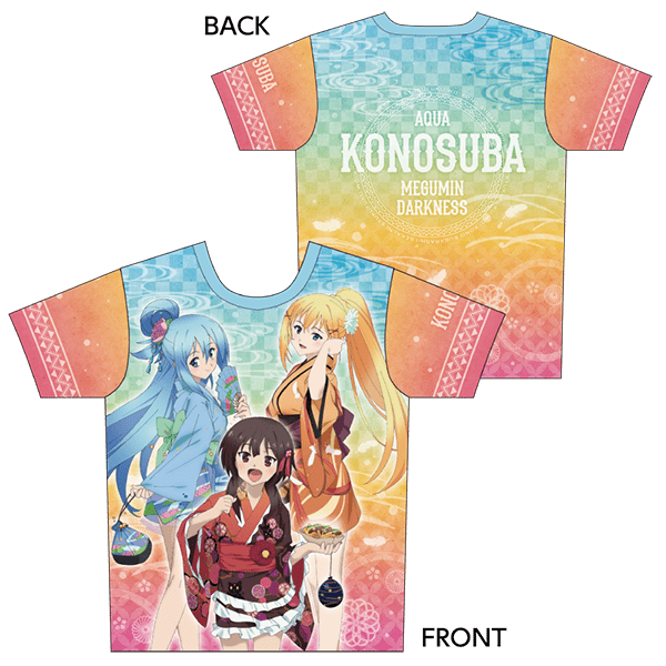 Esta vez nos sorprenden con una camiseta completamente personalizada con el diseño y la ilustración especial de la colaboración y una batería portátil igualmente decorada con el diseño e ilustración especial de las chicas de Konosuba!. La camiseta tendrá un costo de 6050 yenes (59 dólares aprox.) y la batería costará 6600 yenes (60 dólares aprox.).
