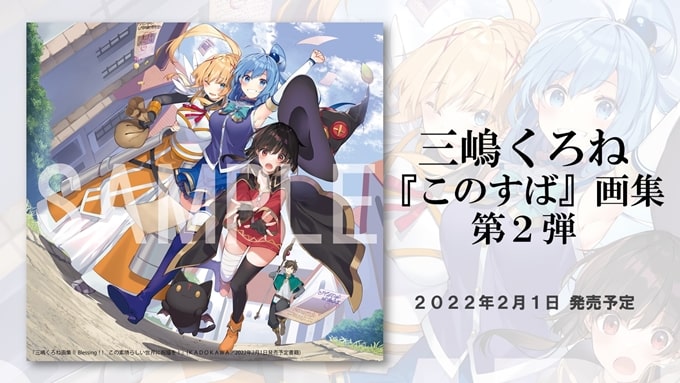 Para promocionar el lanzamiento del libro de arte «Mishima Kurone Art Collection Book 2 Blessing!!» de la popular franquicia Konosuba! (Kono Subarashii Sekai ni Shukufuku wo!), el canal en Youtube de Kadokawa Anime publicó un video promocional narrado por Sora Amamiya (Aqua) y Jun Fukushima (Kazuma). Queda señalar que el libro de arte se lanzará a la venta el 1 de febrero.