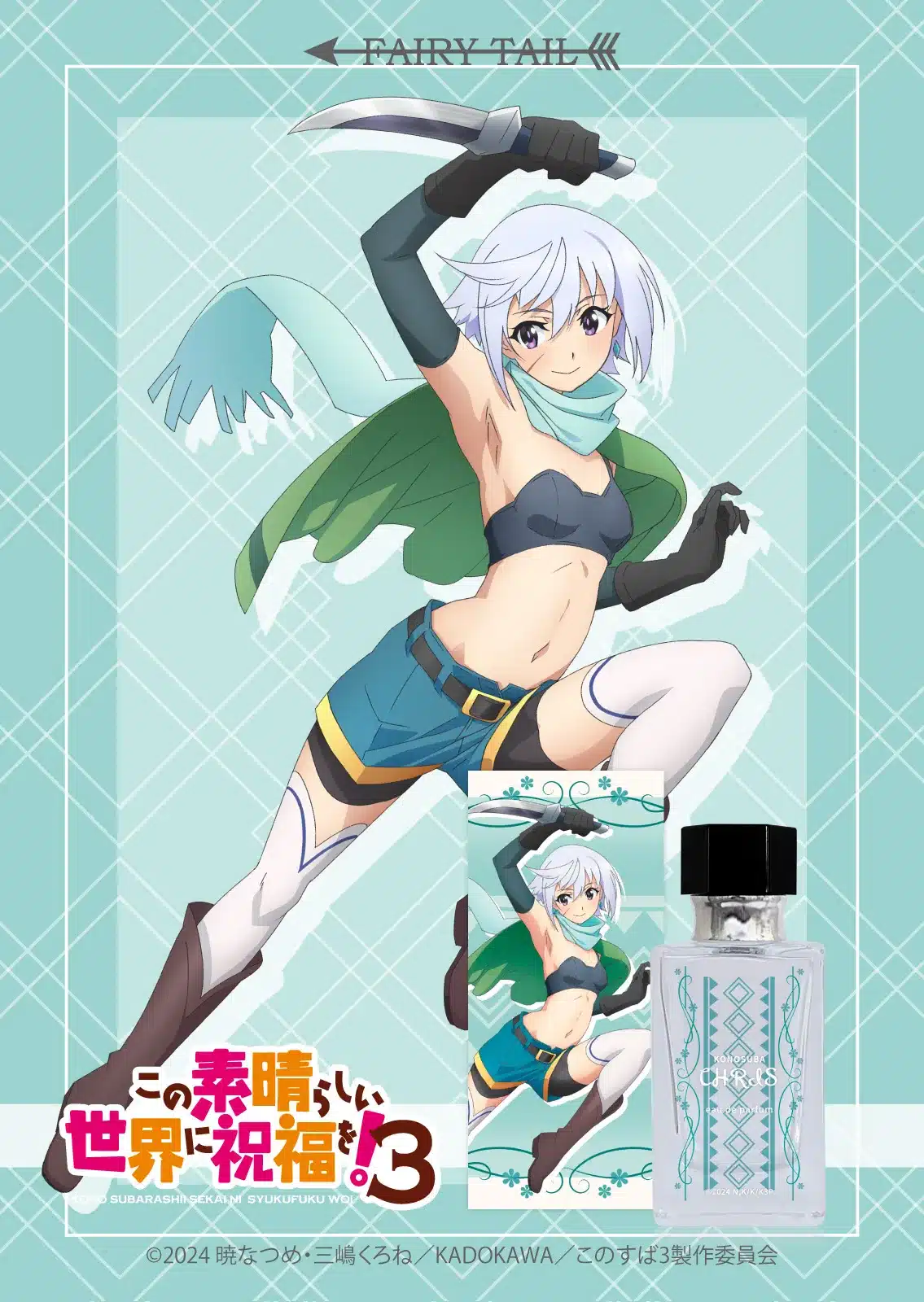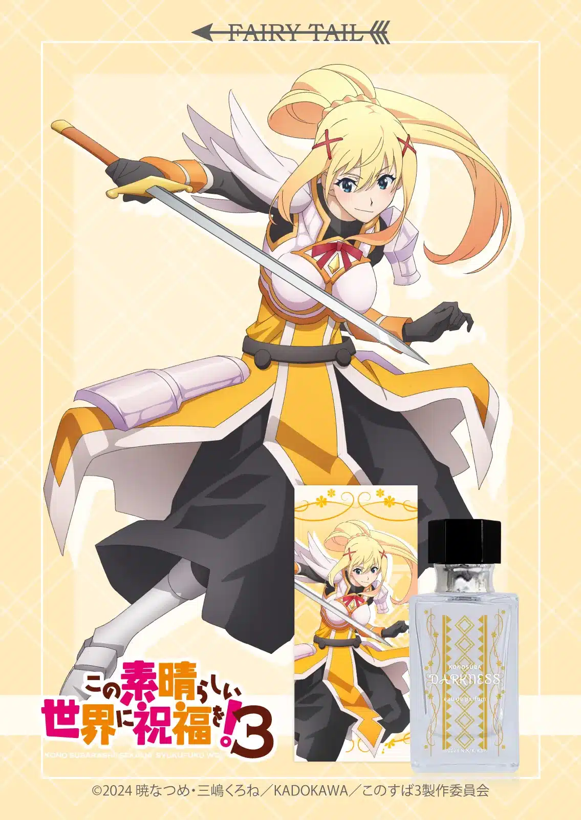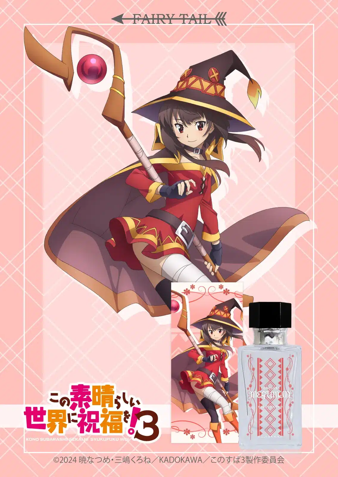 La compañía japonesa Fairytail ha sorprendido con una línea de fragancias inspiras en las encantadoras protagonistas del anime «KonoSuba: God’s Blessing on This Wonderful World!» (Kono Subarashii Sekai ni Shukufuku wo!).