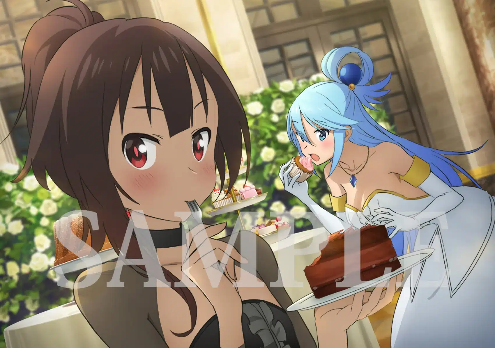 Aqua insiste que esto no es posible, pero para su mala suerte, esta propuesta es aceptada y su lugar de receptora será ocupado por otra diosa, mientras que ella es arrastrada al nuevo mundo para ayudar a Kazuma en su aventura para vencer al rey demonio. Prepárate para sumergirte en esta increíble aventura que te llenará de muchas emociones y también grandes momentos de comedia.