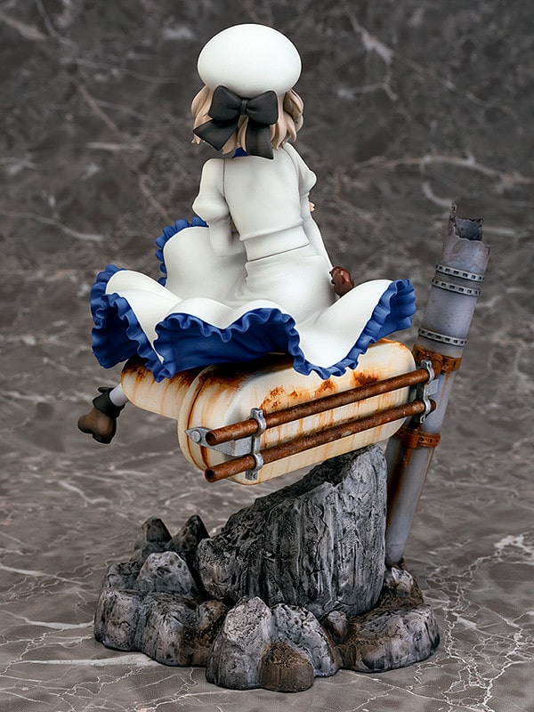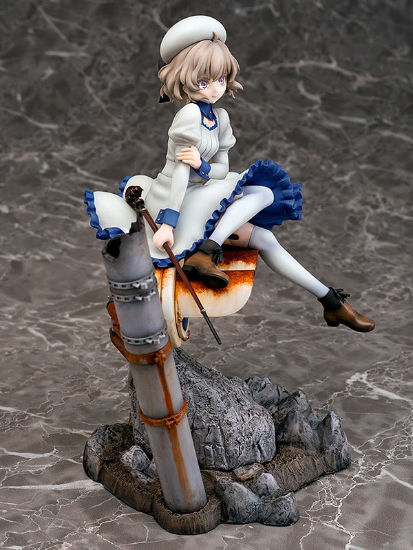 En esta nueva figura podemos ver a Kotoko Iwanaga usando su característico atuendo visto en el anime. Se encuentra sentada encima de un semáforo en ruinas mientras muestra una sonrisa atrevida en su rostro. Cuenta con su característico bastón con adorno de gato así como con su boina. También podemos observar su prótesis de pierna la cual fue pintada en un color ligeramente diferente para contrastar con su piel. Como aclaración, se indica que el óxido del semáforo es realizado mediante una técnica de pintura especial que puede generar variaciones de acabado. La figura completa está realizada en plásticos ABS y PVC de alta calidad.