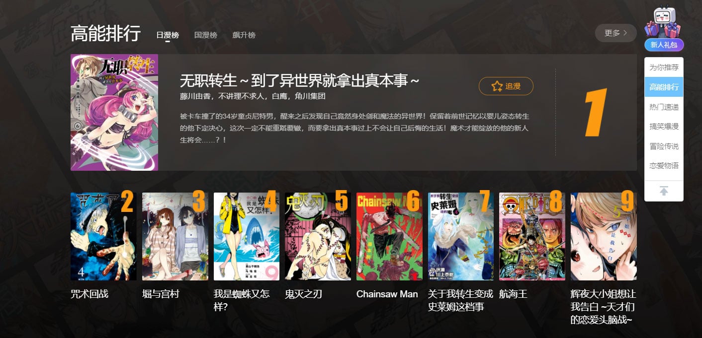 En el sitio web Yaraon! tambiรฉn se ha revelado que el manga de Jujutsu Kaisen ocupa el segundo lugar en el ranking de mangas de la plataforma, siendo superada por el manga Mushoku Tensei: Isekai Ittara Honki Dasu.