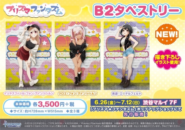 Tambien habrá una exhibición de tamaño real de ilustraciones de moda urbana al estilo de Shibuya de los personajes Illyasviel von Einzbern, Miyu Edelfelt y Chloe von Einzbern. Además también habrá artículos originales a la venta y una exhibición de figuritas de Chloe von Einzbern que ya están disponibles bajo reserva.