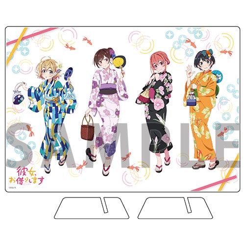 Tablero de acrílico con una ilustración de las protagonistas en Yukata por 2,200 yenes.