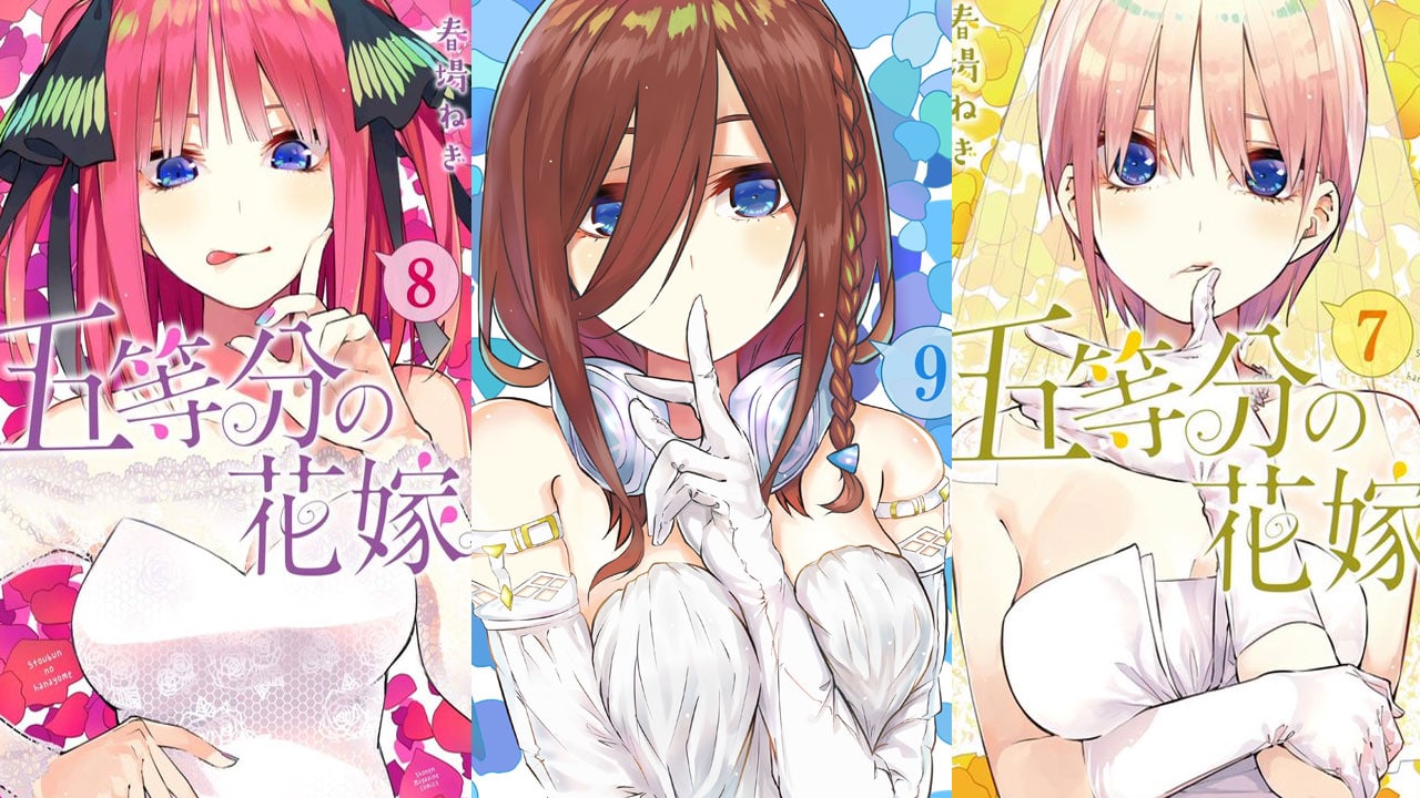 Go-Toubun no Hanayome es un manga escrito e ilustrado por Negi Haruba. Se ha serializado semanalmente en la revista Weekly Shonen desde agosto de 2017, actualmente el manga cuenta con 10 tomos compilatorios.