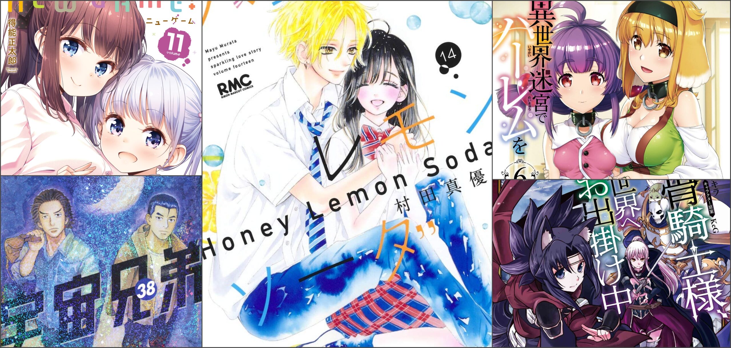 Sin embargo, sigue siendo el mejor en términos de ventas generadas durante la semana. Por lo tanto, podemos ver nuevos títulos con Honey Lemon Soda en el número 1. vendió 73.216 copias la semana anterior. La serie es seguida por Isekai Meikyuu de Harem o en el número 2, mientras que Kinou Nani Tabeta? bajó un puesto al número 3 durante la semana.