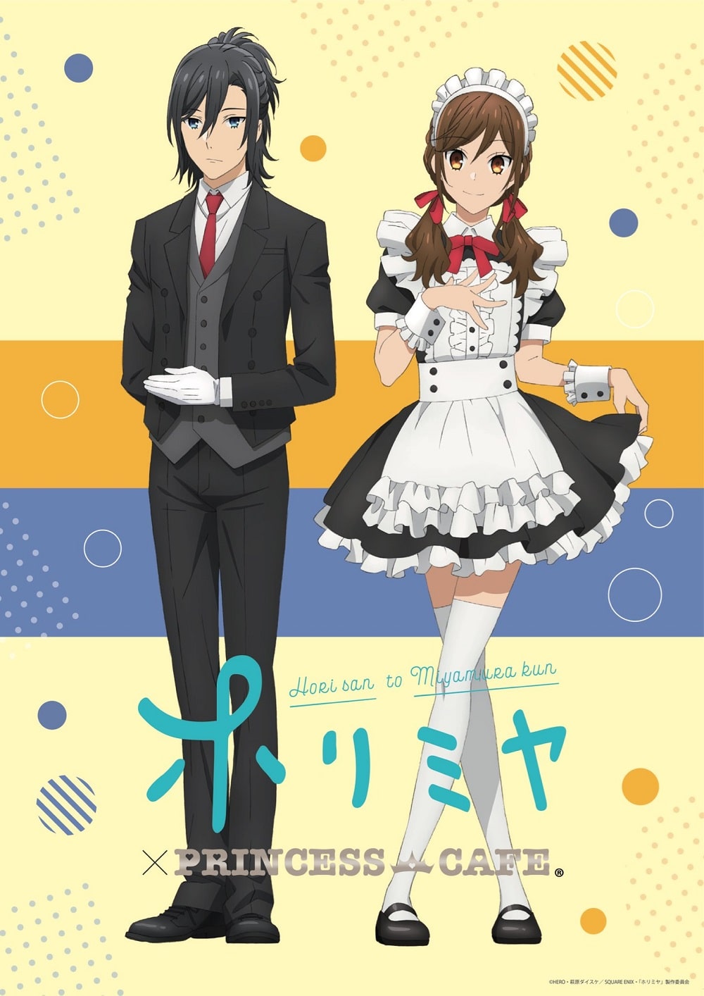 La adaptación a anime del manga spin-off Horimiya anunció una colaboración con PriPricafe para lanzar un menú temático y mercancía inspirada en los protagonistas de la serie. Para esta ocasión, ambos protagonistas lucirán trajes de maids