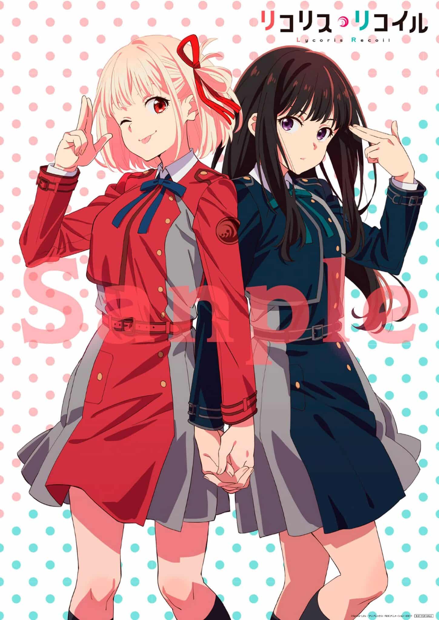 En el sitio web oficial del anime original Lycoris Recoil se han dado a conocer unas visuales especiales de beneficio con la compra/reserva de los volรบmenes Blu-Ray/DVD de la serie. Cabe seรฑalar, que en su mayorรญa, las visuales que mostraremos a continuaciรณn estarรกn protagonizadas por los personajes Chisato Nishikigi y Takina Inoue, quienes pasaran buenos momentos juntas.