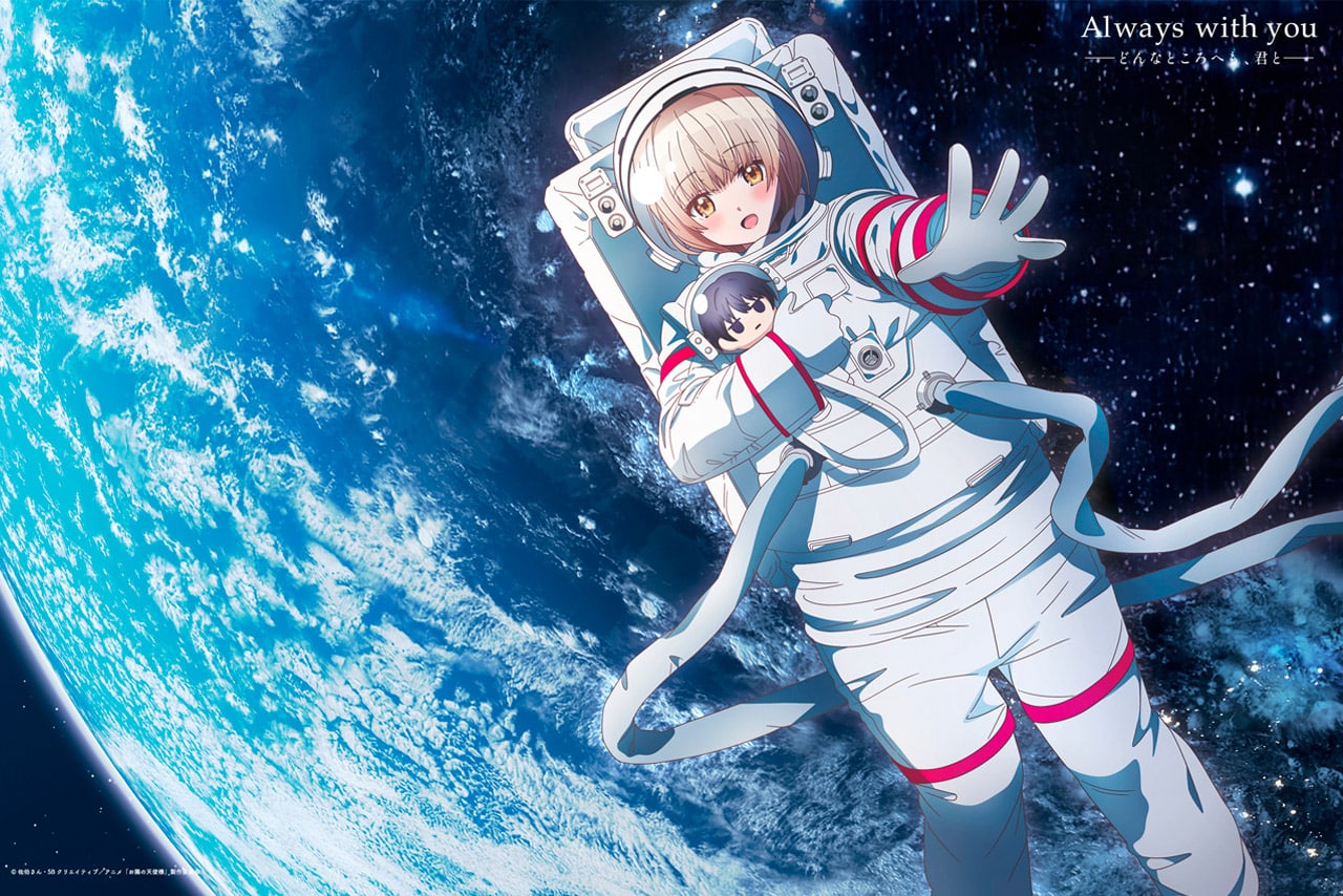 Luciendo un traje de astronauta y sosteniendo un pequeño peluche del protagonista Amane Fujimiya, Mahiru saluda a la cámara mientras está explorando el espacio exterior. Una postal más que asombrosa y un regalo que los fanáticos han agradecido por la acción del comité de producción de la serie al presentarla.
