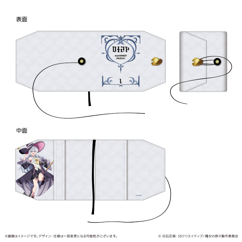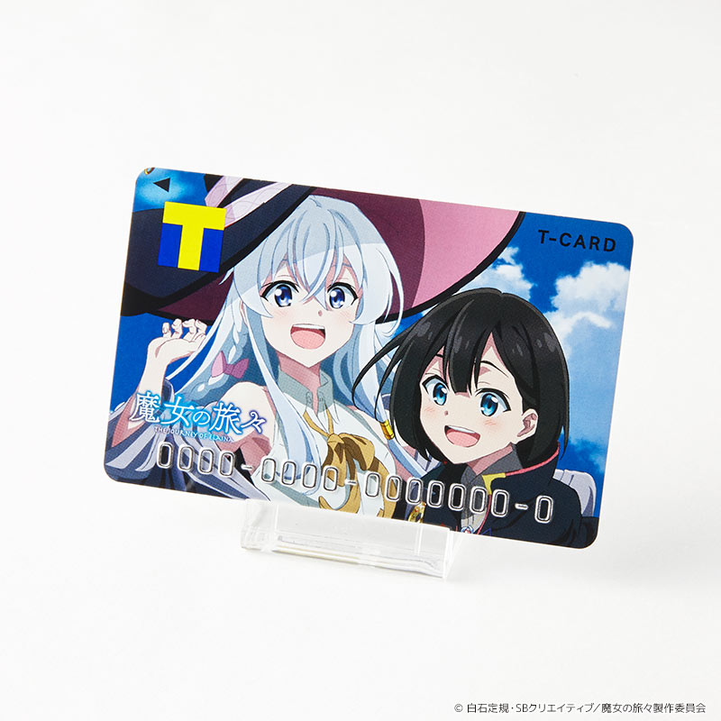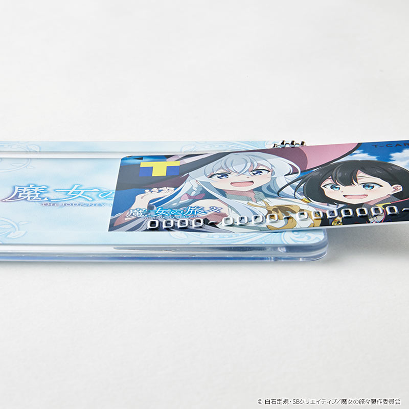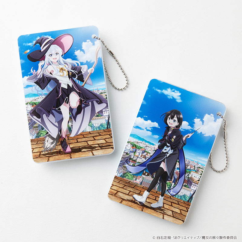 Esta es una serie de estuches para tarjetas de crรฉdito o dรฉbito con las ilustraciones de Elaina y Saya respectivamente y en el frente tienen el logo del anime Majo no Tabitabi. Estos estuches tendrรกn unas dimensiones de 110 x 70 mm y tendrรกn un costo individual de 1540 yenes (14 dรณlares aprox.)