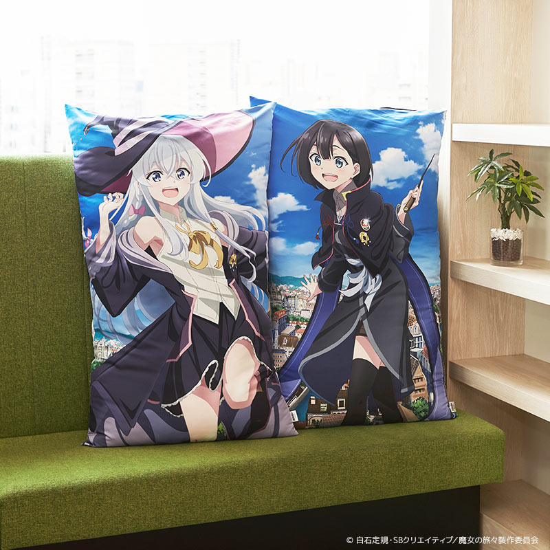 El primer producto que nos presentan son estas increรญbles almohadasย con las ilustraciones especiales de Elaina y Saya. Estas almohadasย tendrรกn por la parte de adelante la ilustraciรณn exclusiva de la colaboraciรณn y por la parte de atrรกs tendrรกn ilustraciones extraรญdas del anime original Majo no Tabitabi.