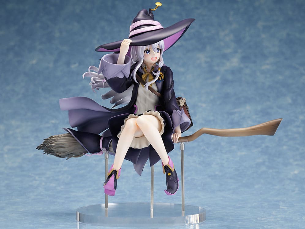 La figura nos presenta a la personaje Elaina con una encantadora sonrisa y montada sobre su escoba, el cual tiene un detallado fantastico que saca a relucir el atractivo de dicha figura que dejara a muchas personas con ganas de adquirir el producto.