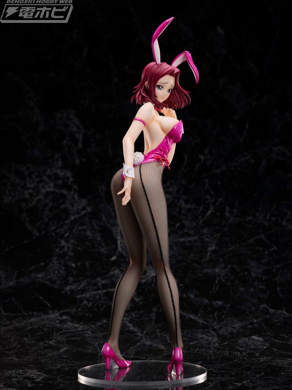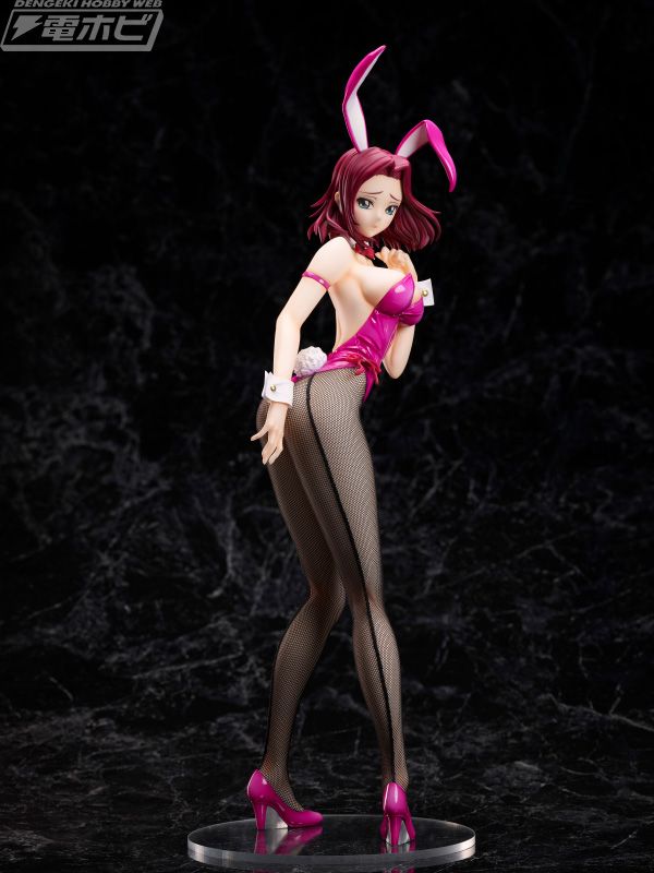 La figura nos muestra al personaje Kallen Kozuki vistiendo sensual traje de conejita de color rosa. La figura tiene un gran aprecio al detalle que destaca por representar al personaje fielmente en una pose coqueta que resalta la esbelta figura y la belleza natural de Kallen Kozuki.