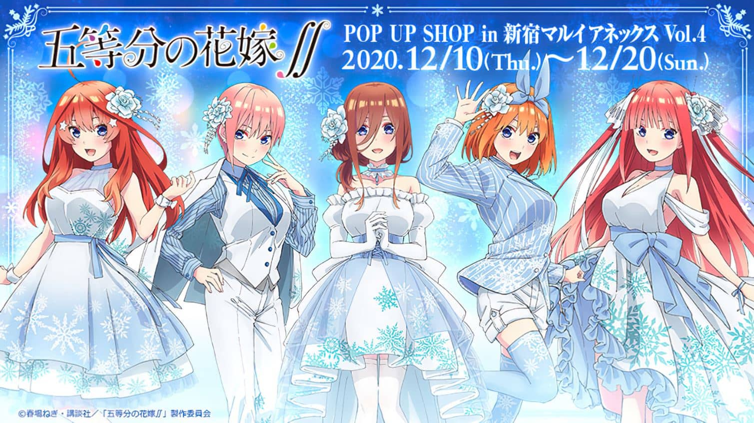 La cuenta de Twitter oficial para la adaptación al anime del manga Go-Toubun no Hanayome anunció una colaboracion con la compañia POP UP SHOP para lanzar una línea de productos inspirados en las quintillizas.