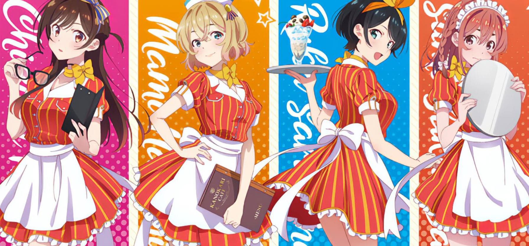El evento se titula «彼女、お借りします×プリンセスカフェ«, y en total se venderan 7 tipos de productos distintos inspirados en una ilustración en la que vemos a Chizuru y compañía lucir encantadores vestidos de maids.