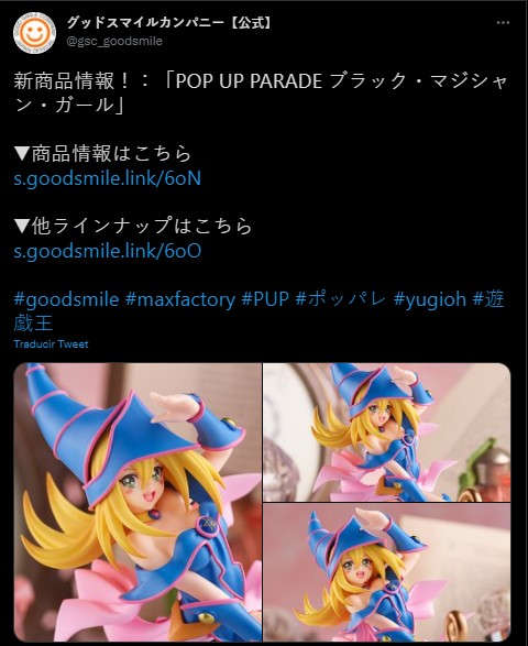 A través del sitio web oficial, Good Smile Company anunció el lanzamiento de una figura a escala inspirada en Dark Magician Girl (Chica Maga Oscura) del anime Yu-Gi-Oh! Duel Monsters. Esta figura pertenece a la línea POP UP PARADE de costo asequible y lanzamientos rápidos que promete traer a los personajes de series populares.