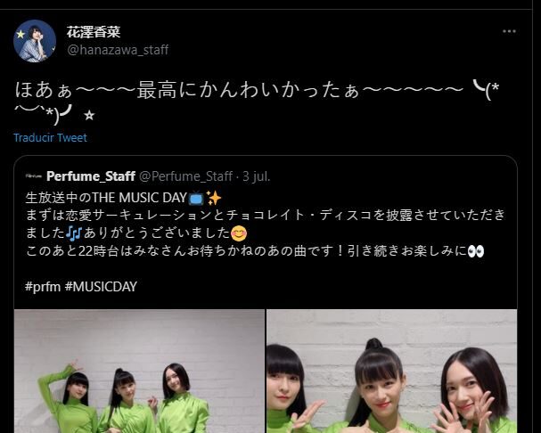 El video tiene una duraciรณn de tan solo 21 segundo y en esta ocasiรณn el grupo baila una versiรณn en inglรฉs del emblemรกtico tema musical de anime. Aunque esto no es todo, ya que la seiyuu Kana Hanazawa reaccionรณ a una publicaciรณn en Twitter del grupo Perfume donde mencionan lo ocurrido y Hanazawa respondiรณ con el siguiente comentario: ยซHey ~~~ Fue tan lindo ~~~~~โฐ (* ยด๏ธถ`*)โฏโญยป.