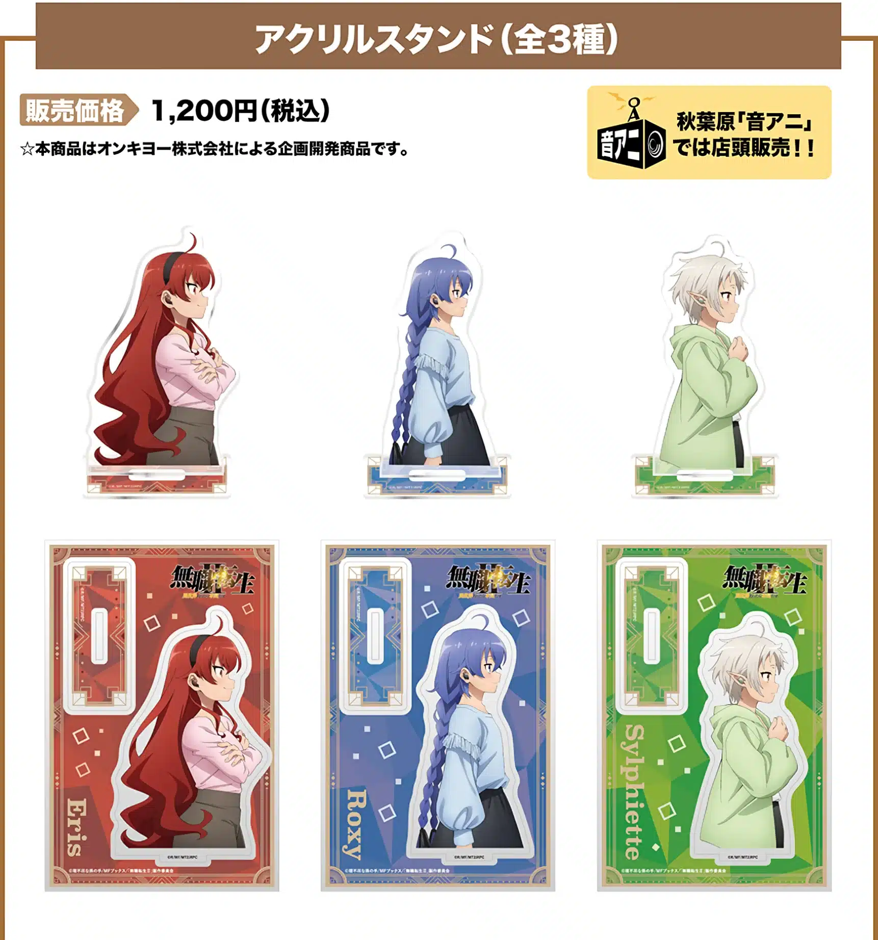 En colaboración con Onkyo Direct, Mushoku Tensei: Isekai Ittara Honki Dasu (Mushoku Tensei: Jobless Reencarnation) ofrece versiones completamente personalizadas del modelo CP-TWS01A de Roxy Migurdia, Eris Boreas Greyrat y Sylphiette.