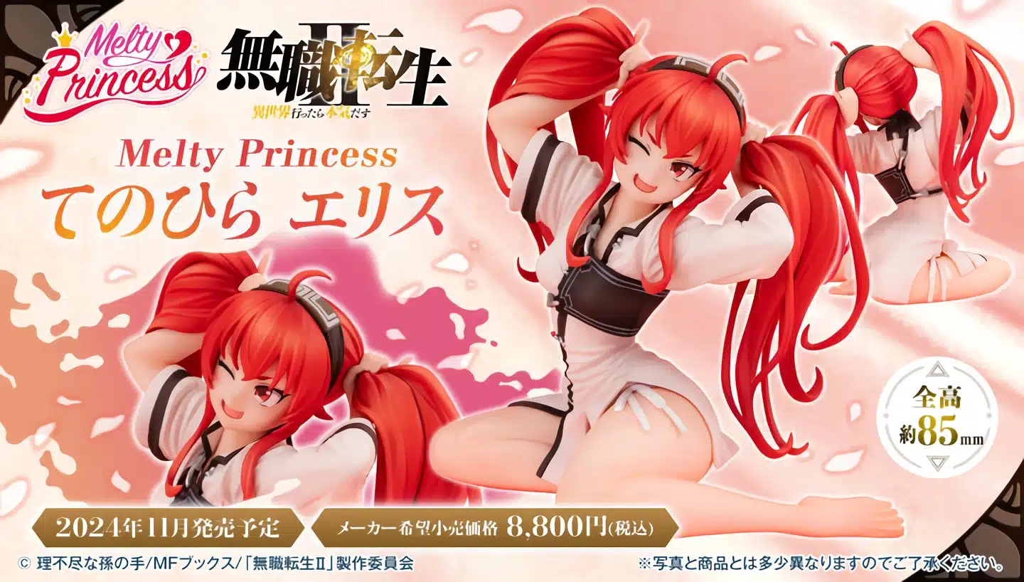 Algo a señalar es que esta adorable figura de Eris Boreas Greyrat pertenece a la división de figuras de la compañía «Mega House» conocida como «Melty Princess«. Esta división se destaca por tener a diversas waifus de la industria del anime como protagonistas principales, y cuenta con una curiosa característica: las figuras tendrán un diminuto tamaño que permitirá al comprador sostener el producto en las palmas de sus manos, llevando el lado más adorable de la waifu seleccionada a un nuevo nivel.