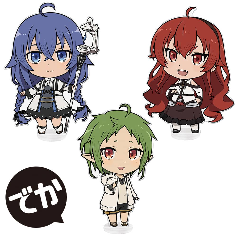 Estas son una serie de figuras acrílicas inspiradas en ilustraciones «Chbi» de Roxy Migurdia, Sylphiette y Eris Boreas Greyrat. Estas figuras tendrán un costo individual de 2.200 yenes (20 dólares aprox.) y todavía no hay información acerca de sus dimensiones.