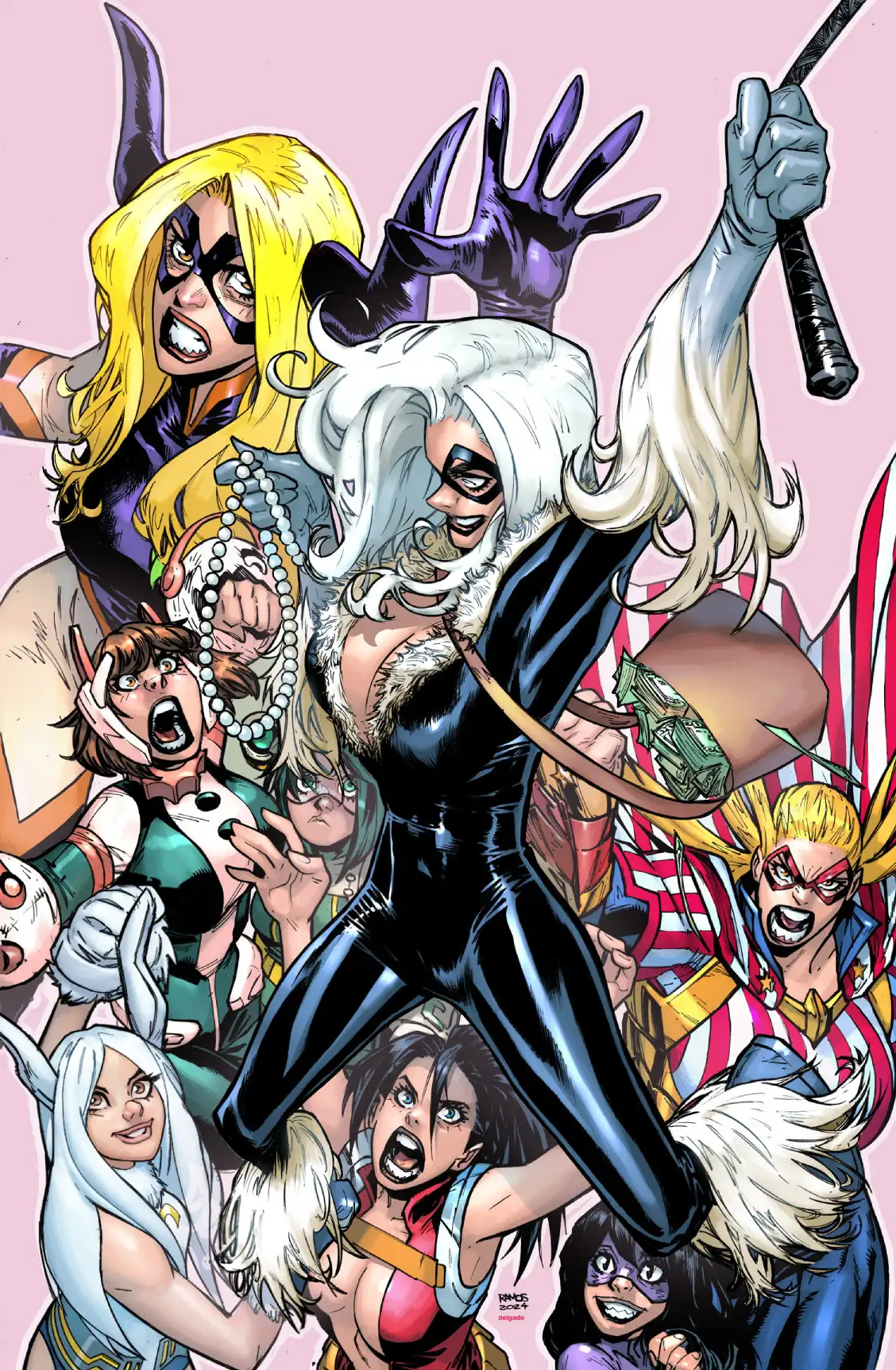 La cuenta oficial de X/Twitter de la franquicia My Hero Academia ha presentado al público una ilustración crossover que une su universo con el de la editorial de historietas estadounidense Marvel Comics. La ilustración fue creada por los artistas de Marvel Humberto Ramos y Edgar Delgado. En ella, podemos ver a algunos personajes femeninos de My Hero Academia, como Ochako Uraraka, Tsuyu Asui, Momo Yaoyorozu, Mount Lady, Mirko y Star and Stripe, reunidas junto a Black Cat de la franquicia Spider-Man en una increíble ilustración.