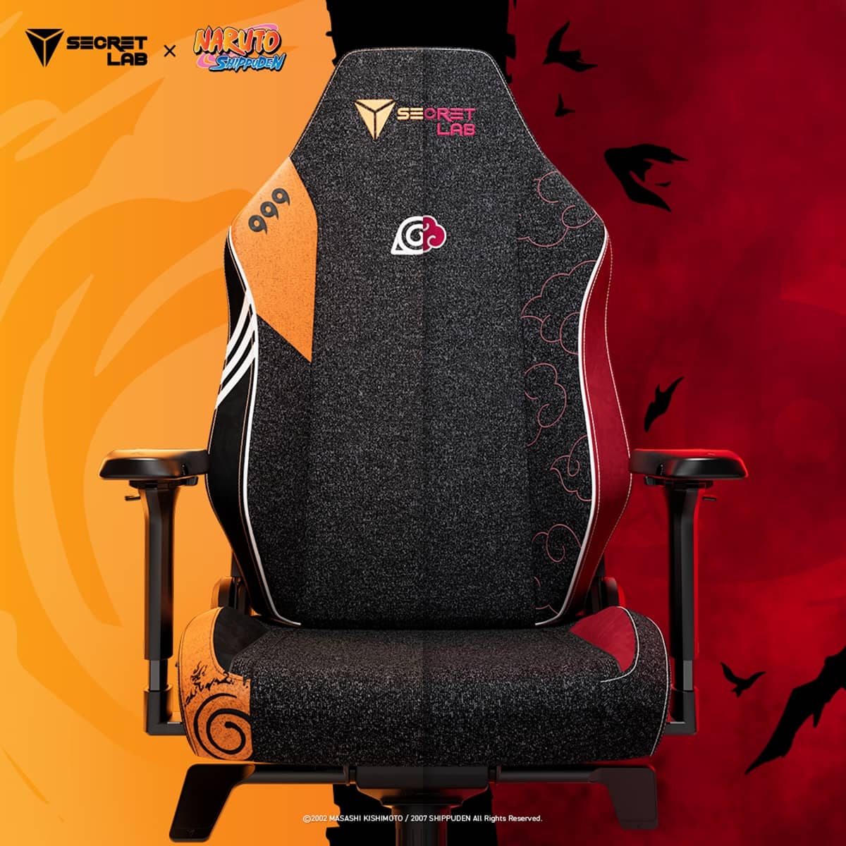 Estas sillas contarán con 2 modelos y están disponibles en S, R y XL. El primer modelo TITAN Evo 2022 Naruto, estará inspirado en el séptimo Hokage, que es reconocible a simple vista, tiene el Estilo de Sellado de los Ocho Trigramas, un fūinjutsu del clan Uzumaki, que selló al zorro de Nueve Colas en el personaje principal. También rinde homenaje como Jinchuriki, tiene los magatamas en las alas laterales representando a Naruto como él Nueve Colas.