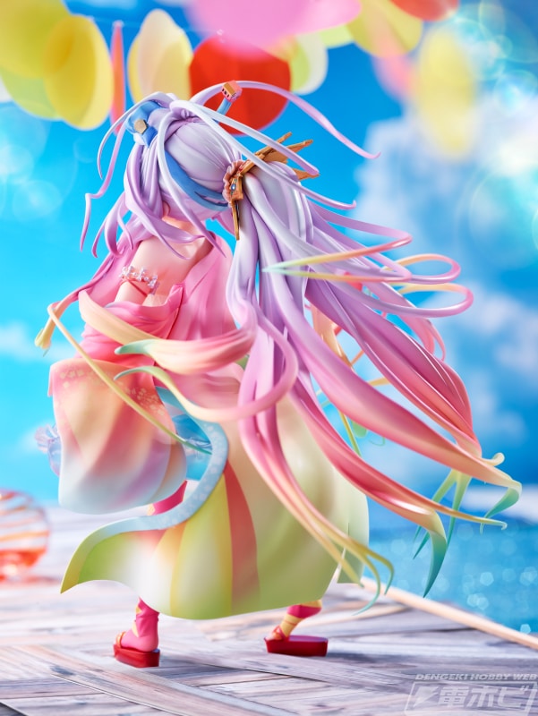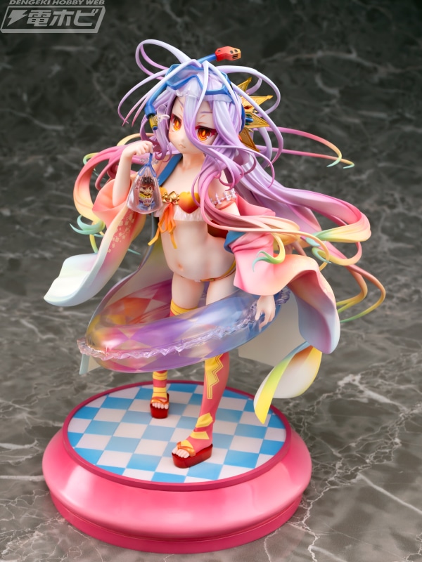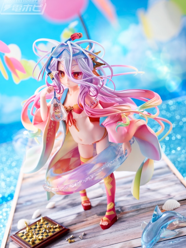 La figura es esculpida por Koudai Abe y destaca por recrear a Shiro luciendo un encantador traje de baño repleto de todo tipo de detalles y texturas de gran calidad. Además, podemos ver como Shiro utiliza un yukata para cubrirse, mientras sostienen con una mano un flotador y con la otra sostiene un bolsa que contiene un pez dorado.