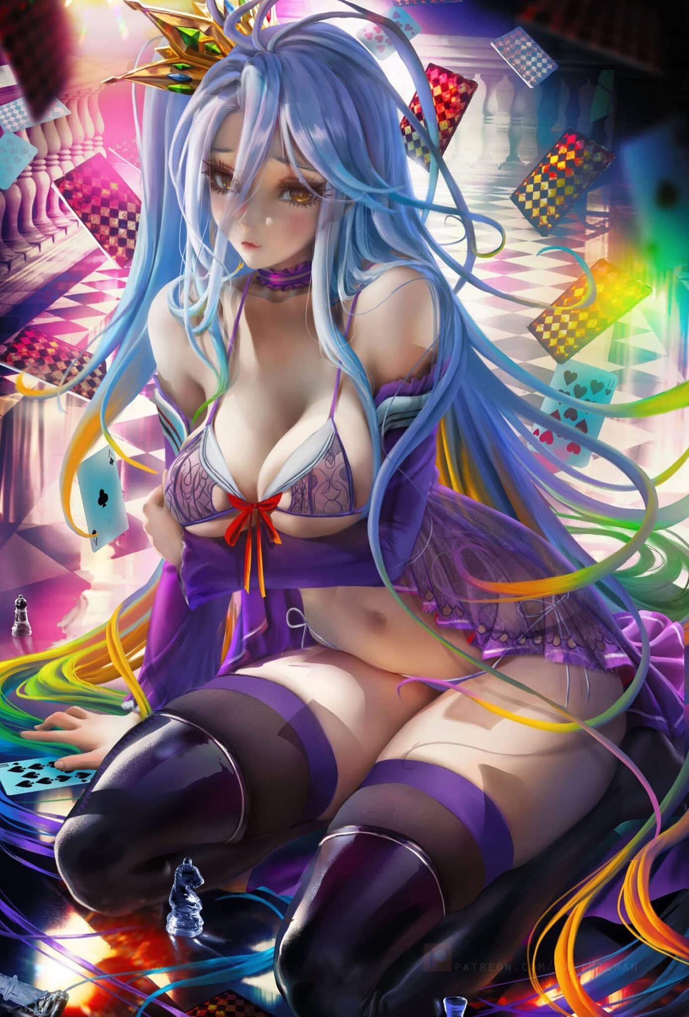 Pero esto no termina aquí, y es que el ilustrador SakimichanArt no solo preparó esta ilustración de Shiro Adulta, sino que también ha decidido ir más allá al preparar una ilustración más «explicita» de esta versión que nos muestra al personaje con poca ropa y dejando a ver su sensual figura.