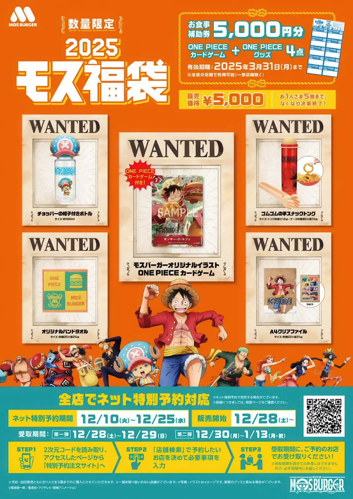 Con un precio de 5,000 yenes, la Bolsa de la Suerte ofrece un valor excepcional, ya que incluye cupones de comida por el mismo valor. Esto significa que esencialmente estás recibiendo los artículos de colección de ONE PIECE de forma gratuita. Además, los fanáticos que reserven la bolsa en línea entre el 10 y el 25 de diciembre se asegurarán de obtener una antes de que se agoten.